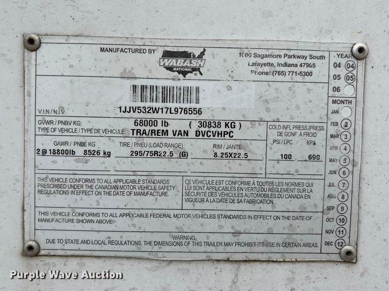 2007 Wabash National DVCVHPC dry van trailer