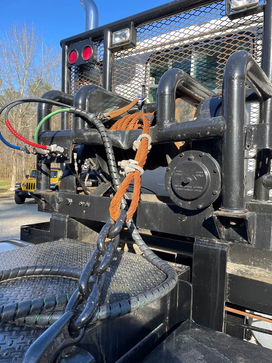 2003 International 7600 Winch truck, CAT C12 engine, Eaton 13 speed transmission, 70,064 low mileage, Headache Rack, 65K Winch, 2 hose Wet...