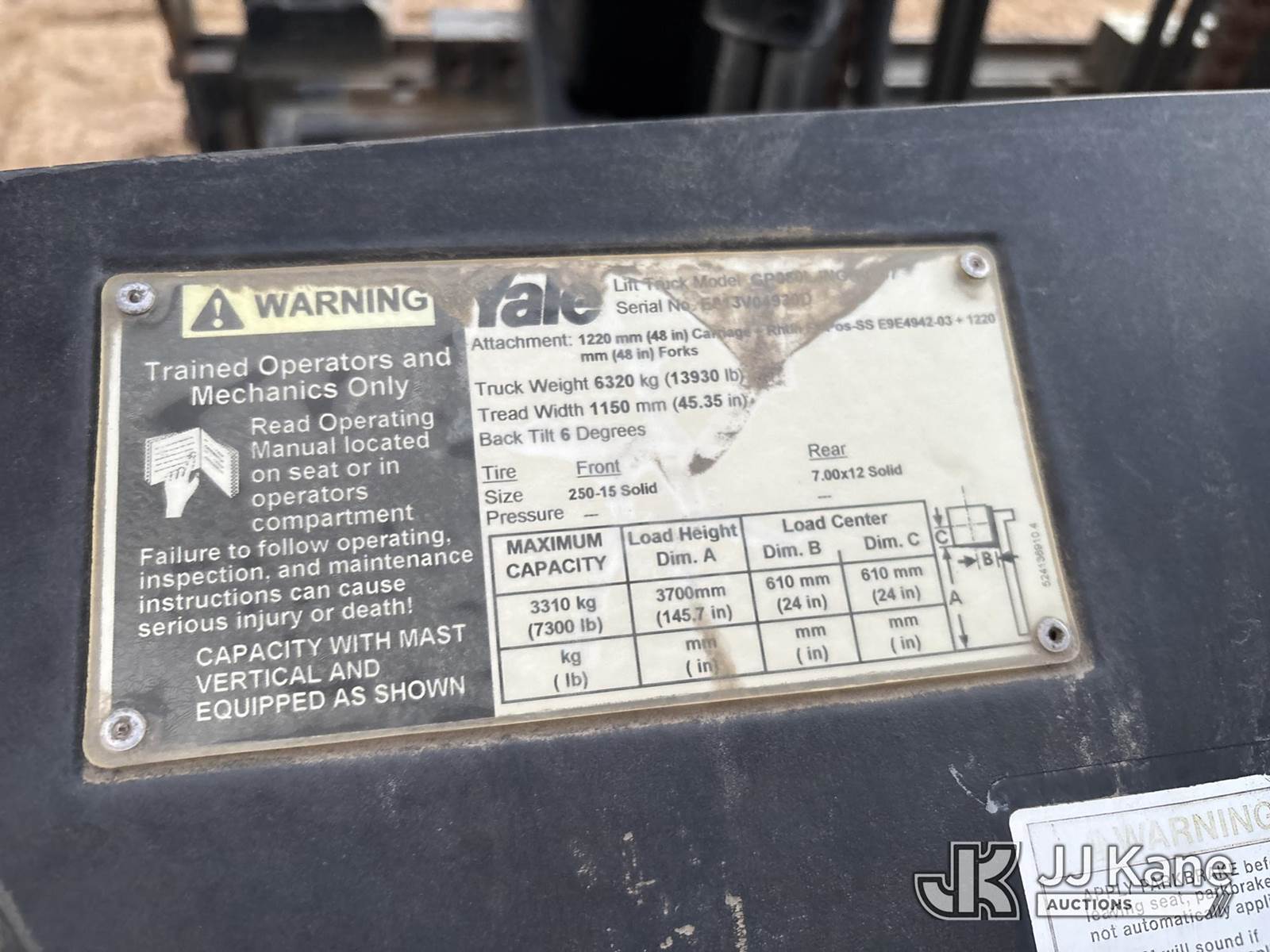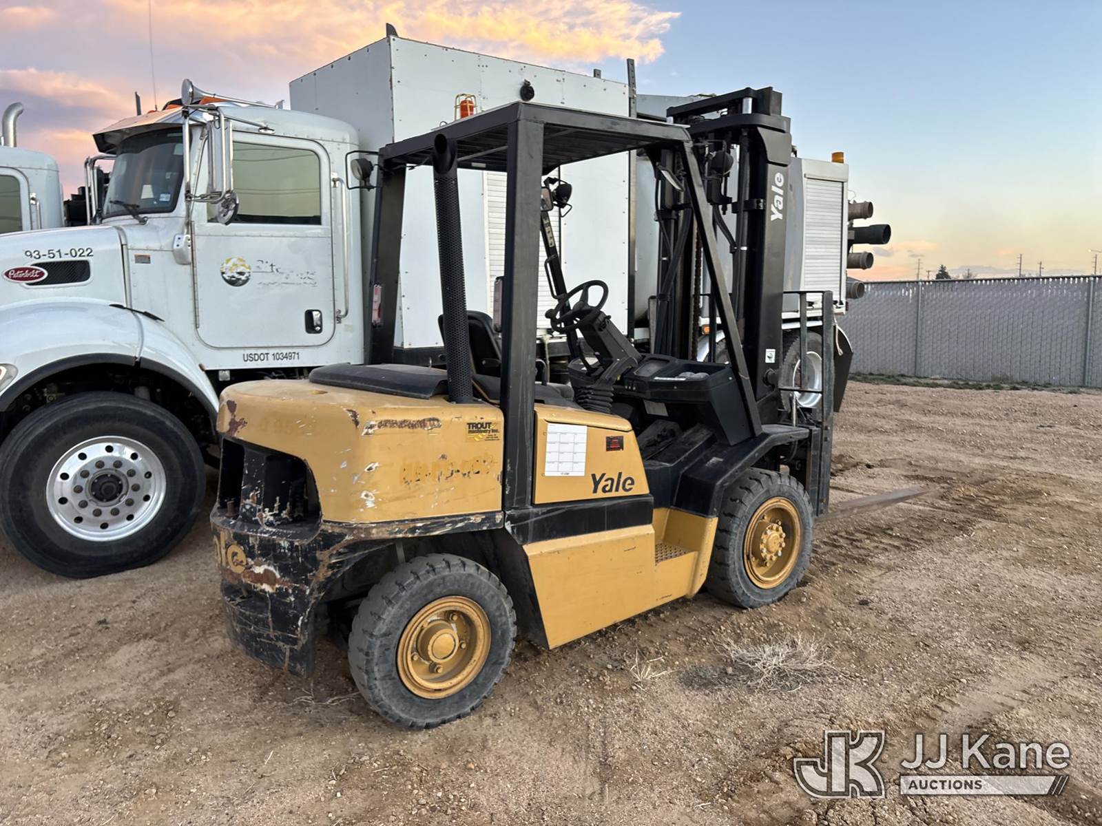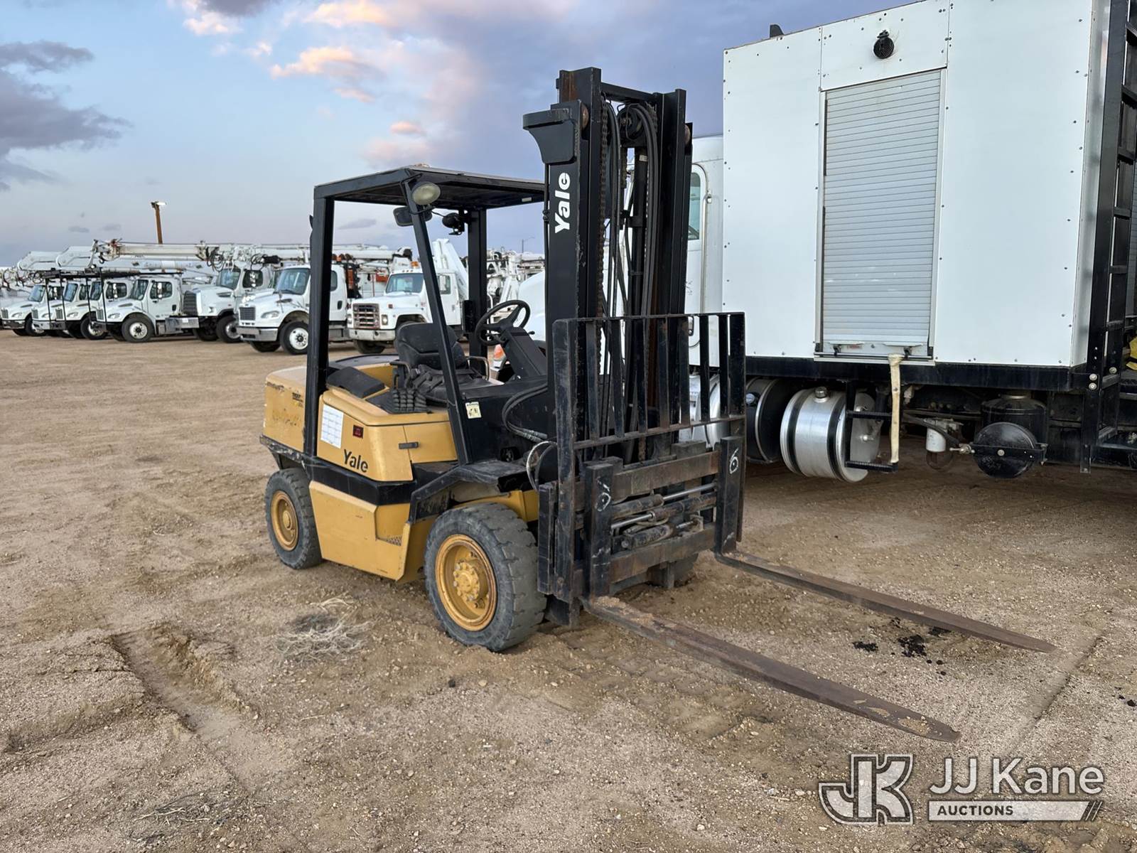 2007 Yale GP080 Pneumatic Tired Forklift, s/n E813V04930D, Shuttle, Gas, with 7300 lb capacity, 145in fork height, 5 ft forks, hydraulic side shift, (Runs & Barely Moves) (Jump to Start, Bounces In & Out of Drive Mode, Hours Meter Not Legible) NOTE: This unit is being sold AS IS/WHERE IS via Timed Auction and is located in Fort Lupton, CO. Inspection & preview days for this unit are the 2 business days prior to the first day of items closing for this auction, item is located at 2105 Northland Dr Fort Lupton, CO 80621 and hours of operations are 8a-4p. For pre-sale questions, please contact Dakota Hoffman @ (720) 621-0786. Dealer License Number 47109. (Buyer is responsible for removal. Assistance by consignor or JJ Kane Auctions is not assured.)