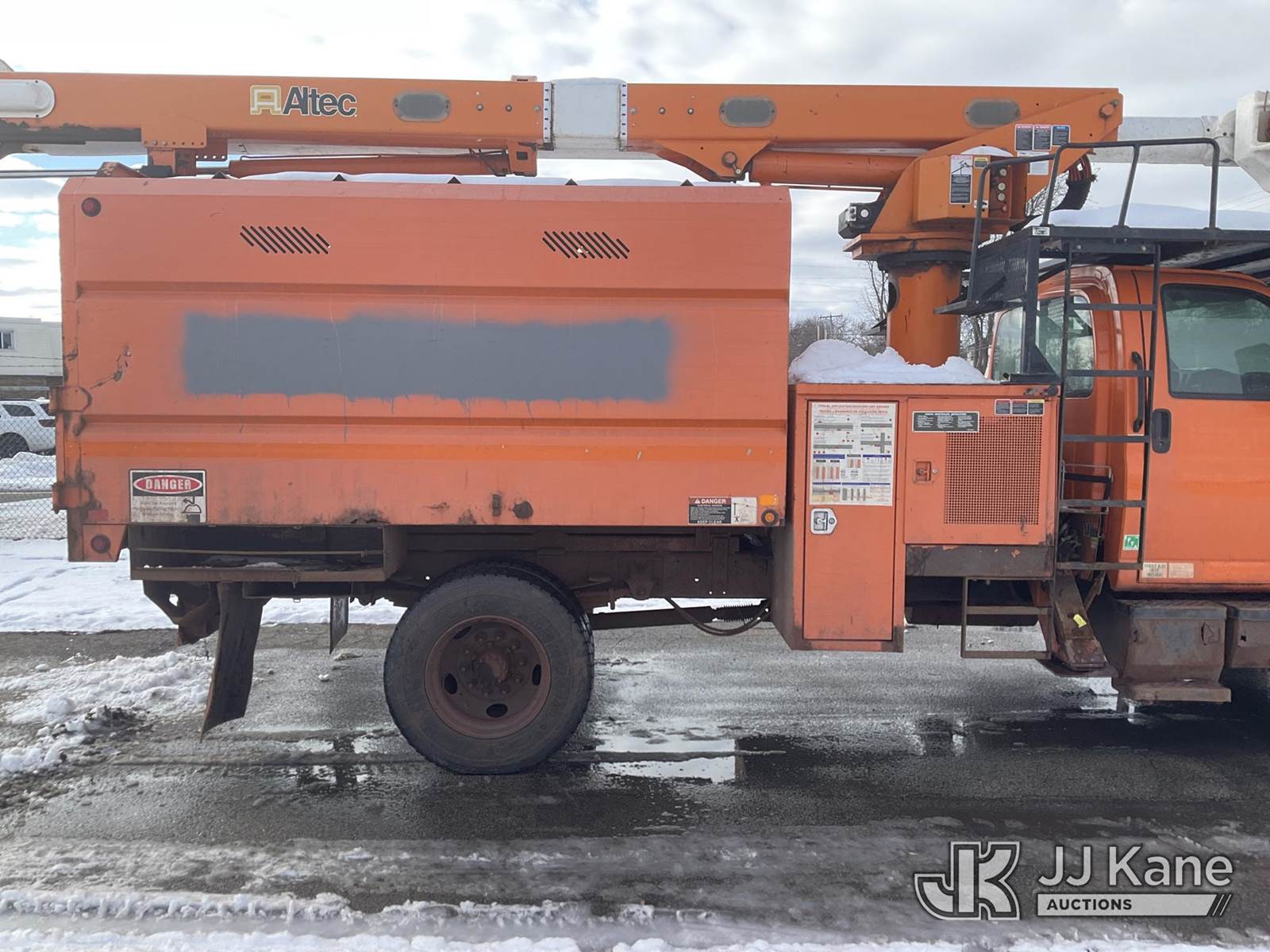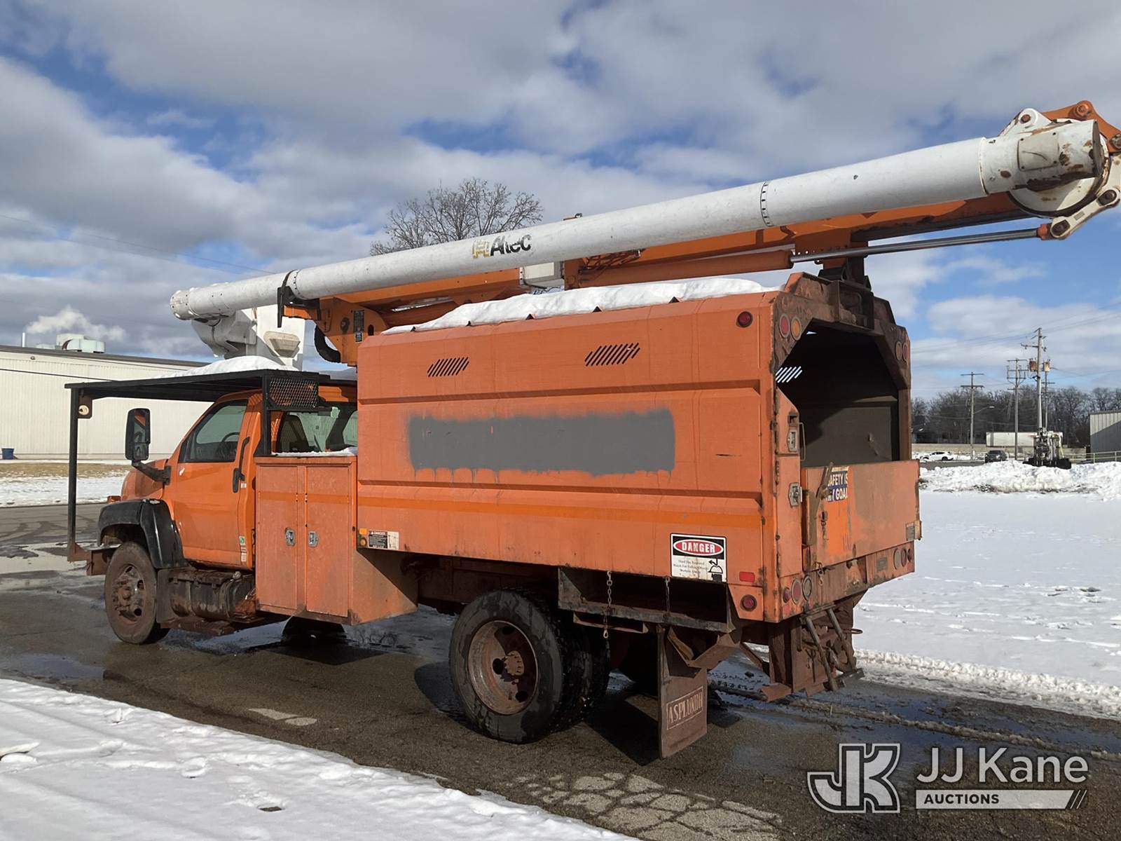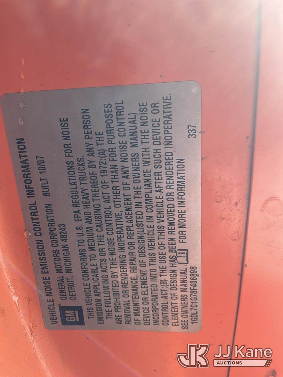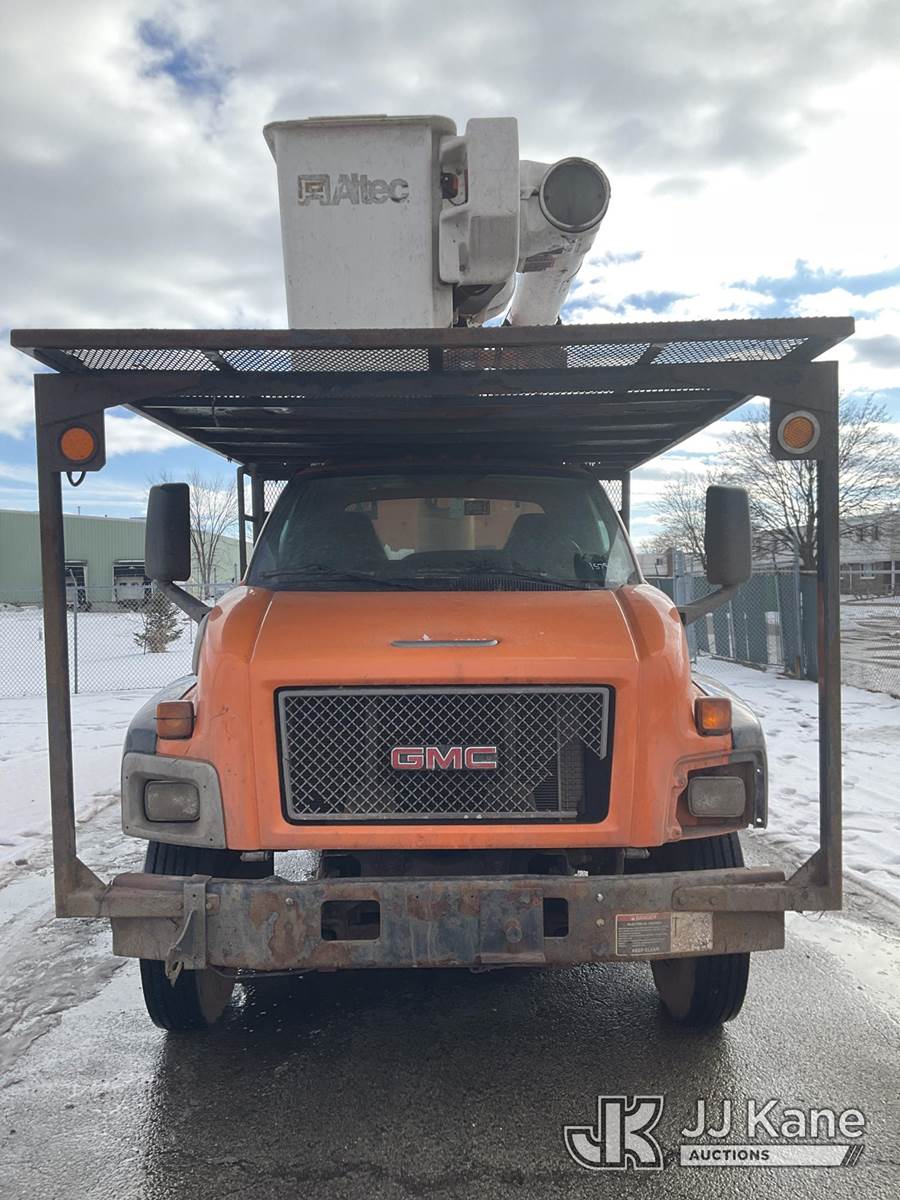 Altec LRV 55, 60 ft, Over-Center Bucket Truck s/n 0108CV7080, with single-man bucket & 2 hyd outriggers, mounted on 2008 GMC C7C042 Chipper Dump Truck, 8.1L V8 OHV 16V, Gas 4X2, 6-spd manual, (92,345 miles) (Runs, Moves, Unable to Engage PTO-Upper Condition Unknown, Pony Motor-has power did not crank-condition unknown)(Front Grill and Headlight Damage) This is a Titled Item NOTE: This unit is being sold AS IS/WHERE IS via Timed Auction and is located in Neenah, WI. Inspection & preview days for this unit are by appointment only; please contact us at contact@jjkane.com or 84-Go-JJKane for more details. (Missing manuals, See Auction Company for Manufacturers Information to obtain manuals) (Buyer is responsible for removal. Assistance by consignor or JJ Kane Auctions is not assured.)