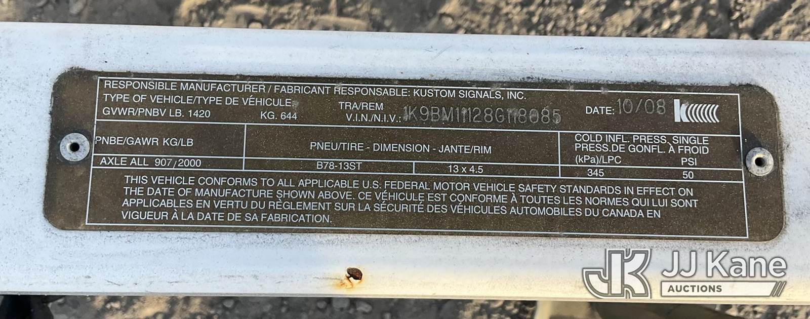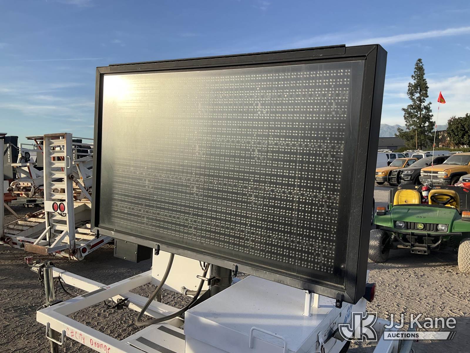 2008 American Signal CMS-465-KADV Portable Message Board, Battery electric, with ball hitch, (Not Starting, Operation Unknown) (Application for Special Equipment) This is a Titled Item NOTE: This unit is being sold AS IS/WHERE IS via Timed Auction and is located in Jurupa Valley, CA. Inspection & preview days for this unit are the 2 business days prior to the first day of items closing for this auction, item is located at 4510 Muth Way Jurupa Valley, CA 92509 and hours of operations are 8a-4p. For pre-sale questions, please contact please contact Office Staff @ (310) 353-7140. Dealer License Number 45696. (Buyer is responsible for removal. Assistance by consignor or JJ Kane Auctions is not assured.)