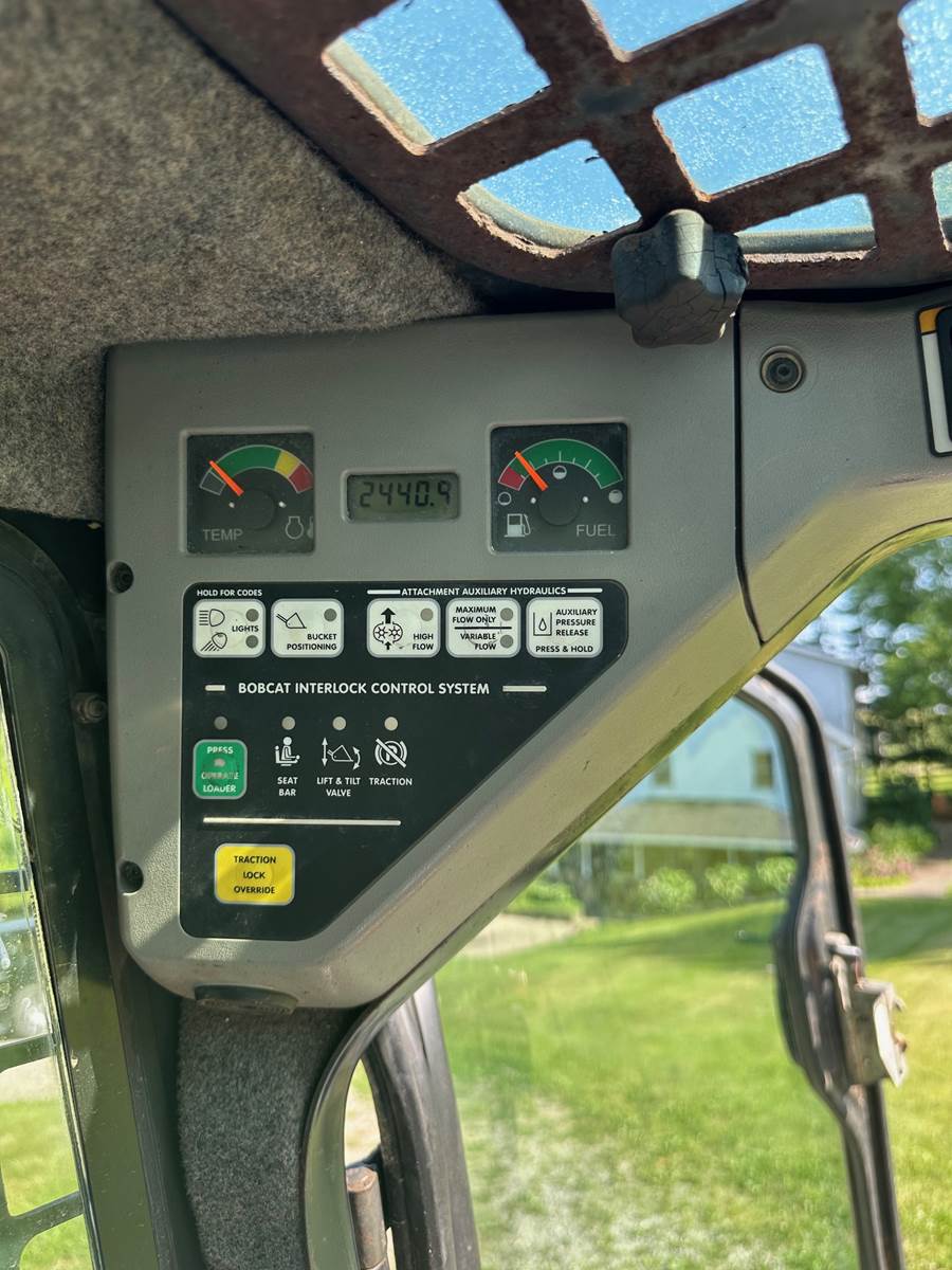 2008 Bobcat S185 Skid Steer 2440 hours, 56 H.P., , 72" bucket, heater, quick connect, V2003-M-DI-T diesel motor with turbo, 2 speed, joystick controls, operating weight 6,220lbs, operates as it should