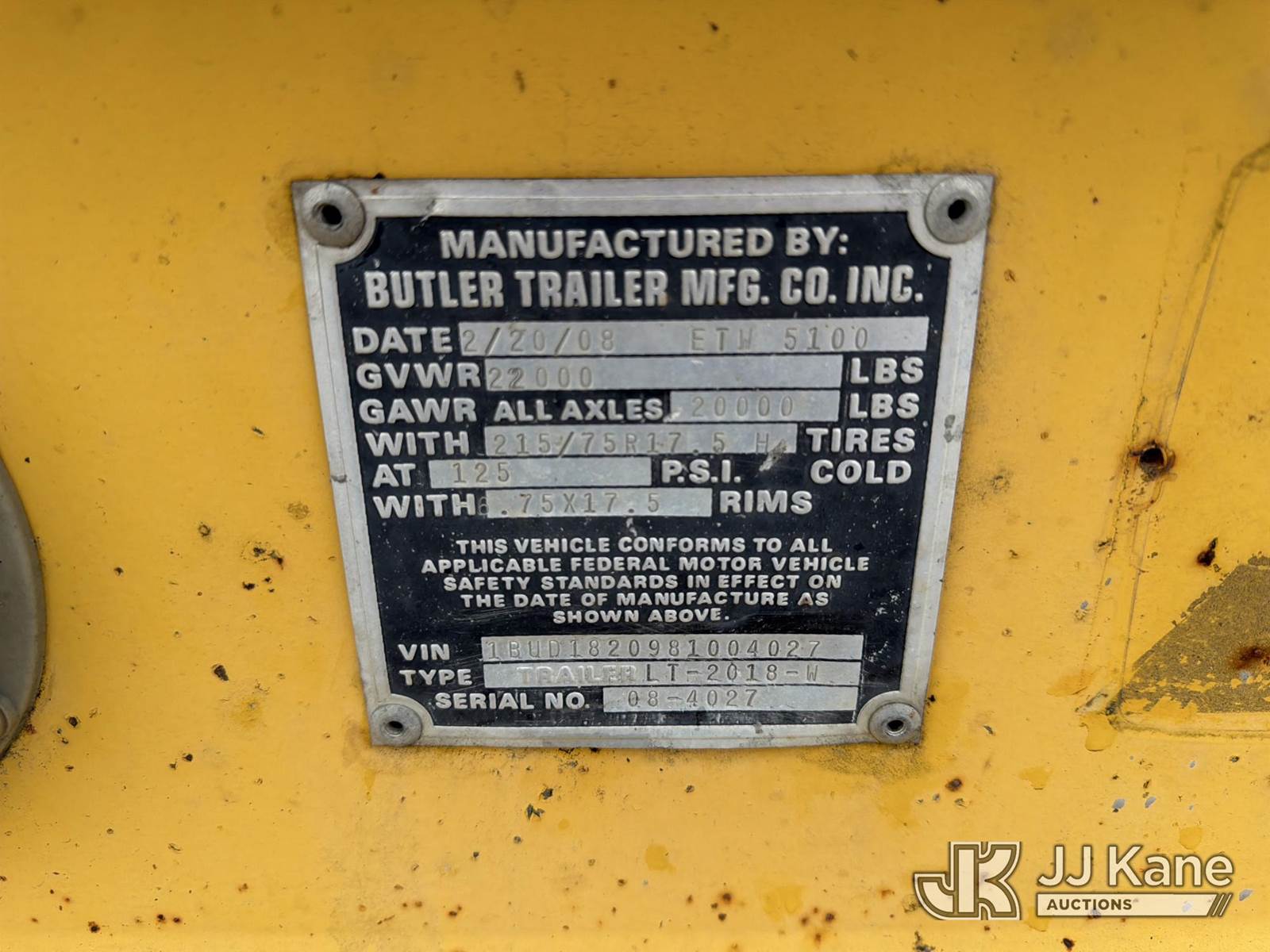 2008 Butler LT-2018-W T/A Axle Tilt-Top Trailer, with 18 in deck between wheels, This is a Titled Item NOTE: This unit is being sold AS IS/WHERE IS via Timed Auction and is located in Chester, VA. Inspection & preview days for this unit are the 2 business days prior to the first day of items closing for this auction, item is located at 13301 Great Coastal Dr Chester, VA 23836 and hours of operations are 8a-3p. For pre-sale questions, please contact Doug Caton @ 804-807-4574. (Buyer is responsible for removal. Assistance by consignor or JJ Kane Auctions is not assured.)