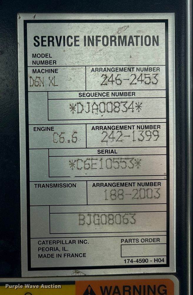 1998 Caterpillar D6R LGP dozer, Hours: 26,337 on meter, Serial: 9PN00851, Engine, Caterpillar 3306, Serial: T9R00865, Cylinders: 6, Fuel...