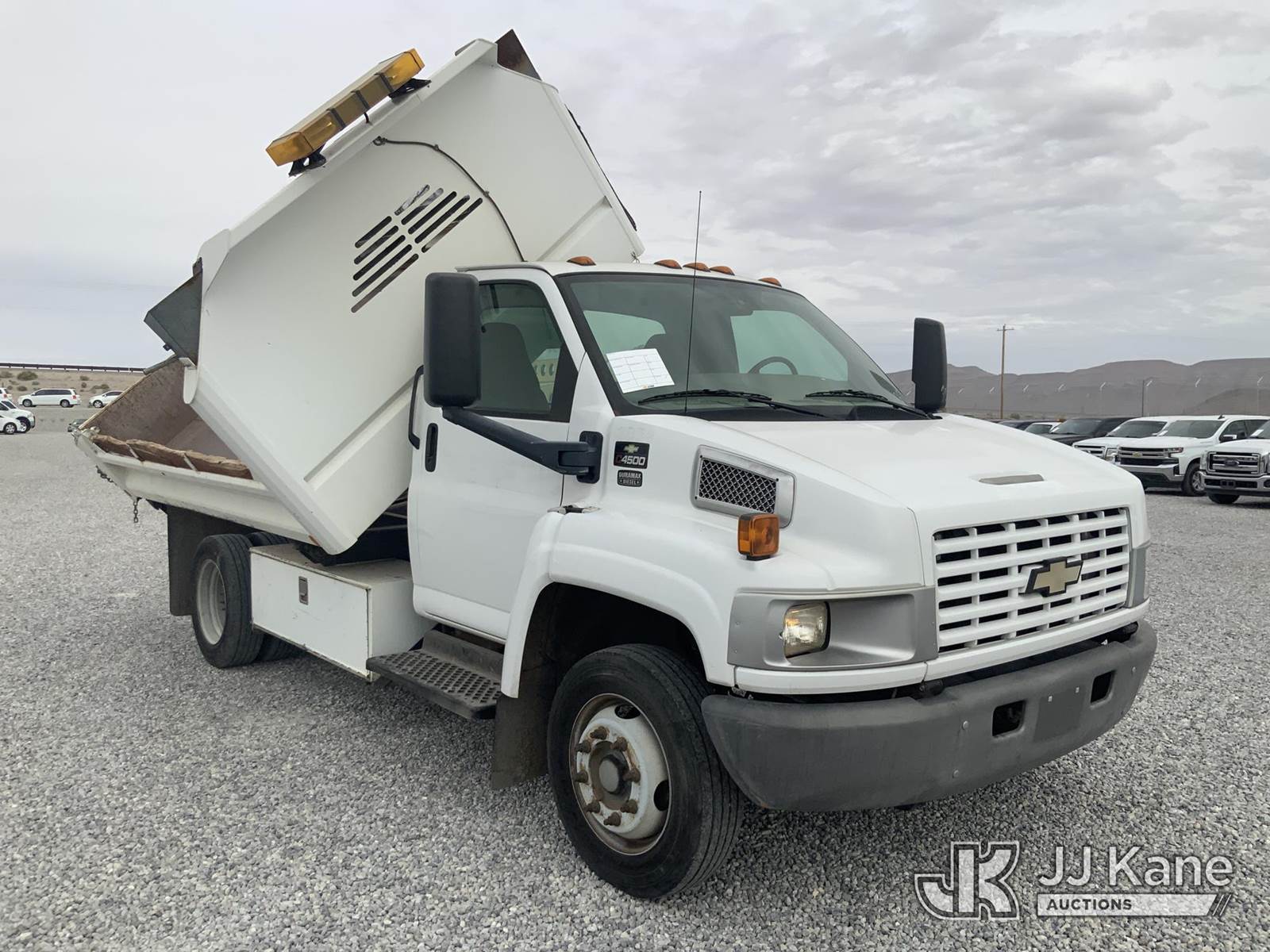 2008 Chevrolet C4C042 Dump Truck, 6.6L Turbo Diesel 4X2, Auto, A/C, with Rear and side dump bed, (60,190 miles) (Runs, Moves & Operates) (Jump To Start) This is a Titled Item NOTE: This unit is being sold AS IS/WHERE IS via Timed Auction and is located in Las Vegas, NV. Inspection & preview days for this unit are the 2 business days prior to the first day of items closing for this auction, item is located at 14655 Grand Valley Pkwy Las Vegas, NV 89165 and hours of operations are 8a-4p. Titles executed exactly as bidder registered. Ensure your name and/or business name and address in JJ Kane and/or ProxiBid is correct before bidding. For pre-sale questions, please contact Office Staff @ (801) 519-0123 and provide sale date and lot number. Las Vegas Dealer License Number DLR000053086 / OHV000053094. (Buyer is responsible for removal. Assistance by consignor or JJ Kane Auctions is not assured.)