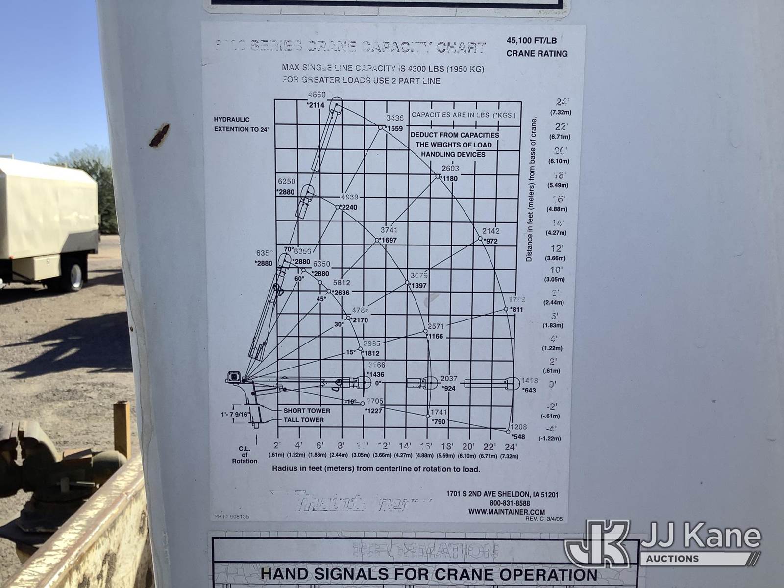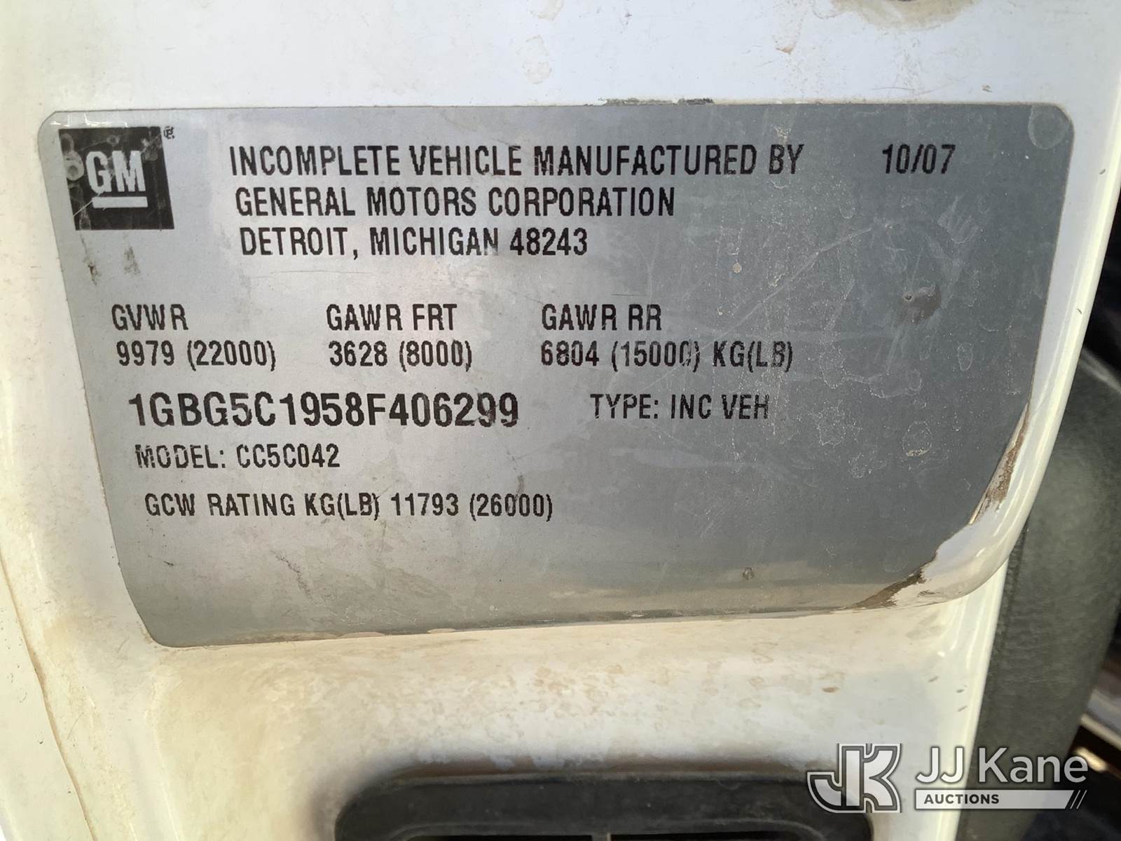 2008 Chevrolet C5C042 Mechanics Service Truck, 6.6L Turbo Diesel 4X2, Auto, A/C, with Maintainer Service Crane 6000 Series, (49,564 miles) (Run & Moves) (Crane Operates, Check Engine Light On) This is a Titled Item NOTE: This unit is being sold AS IS/WHERE IS via Timed Auction and is located in Phoenix, AZ. Inspection & preview days for this unit are the 2 business days prior to the first day of items closing for this auction, item is located at 2505 W Durango St Phoenix, AZ 85009 and hours of operations are 8a-4p. For pre-sale questions, please contact Andrew Espinoza @ (602) 393-8107. (Buyer is responsible for removal. Assistance by consignor or JJ Kane Auctions is not assured.)