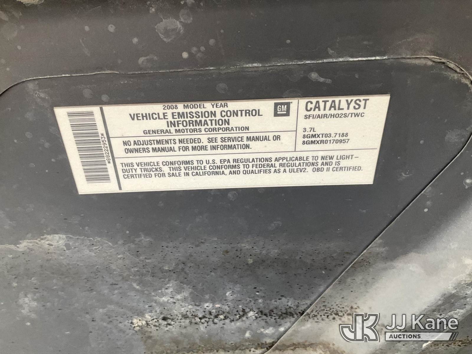 2008 Chevrolet Colorado 4x4 Crew-Cab Pickup Truck, 3.7L L5 DOHC 20V gas, 4-Speed Automatic, A/C, with bed cap, (116,926 miles) (Runs & Moves) (Jump To Start, Small Rip on Drivers Seat, Paint Damage) This is a Titled Item NOTE: This unit is being sold AS IS/WHERE IS via Timed Auction and is located in Sparks, NV. Inspection & preview days for this unit are the 2 business days prior to the first day of items closing for this auction, item is located at 601 Britain Dr Sparks, NV 89437 and hours of operations are 8a-4p. Titles executed exactly as bidder registered. Ensure your name and/or business name and address in JJ Kane and/or ProxiBid is correct before bidding. For pre-sale questions, please contact Office Staff @ (801) 519-0123 and provide sale date and lot number. Sparks Dealer License Number DLR000052908 / OHV000052909. (Buyer is responsible for removal. Assistance by consignor or JJ Kane Auctions is not assured.)