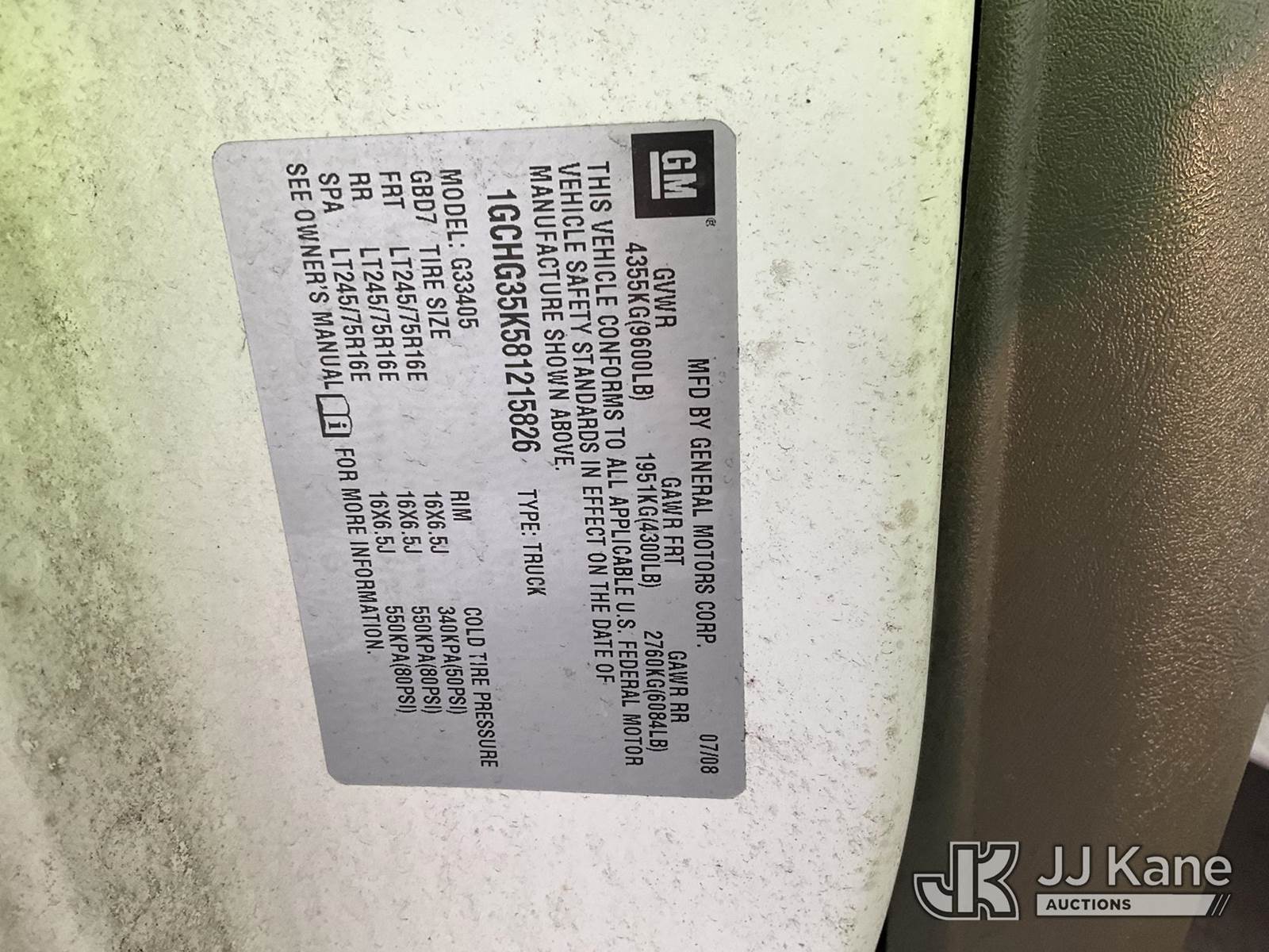 2008 Chevrolet Express 3500 Cargo Van, 8-cyl gas, 4-Speed Automatic, A/C, with Tow Package, (77,982 miles) (Runs & Moves) (Paint Damage) This is a Titled Item NOTE: This unit is being sold AS IS/WHERE IS via Timed Auction and is located in Jurupa Valley, CA. Inspection & preview days for this unit are the 2 business days prior to the first day of items closing for this auction, item is located at 4510 Muth Way Jurupa Valley, CA 92509 and hours of operations are 8a-4p. For pre-sale questions, please contact please contact Office Staff @ (310) 353-7140. Dealer License Number 45696. (Buyer is responsible for removal. Assistance by consignor or JJ Kane Auctions is not assured.)
