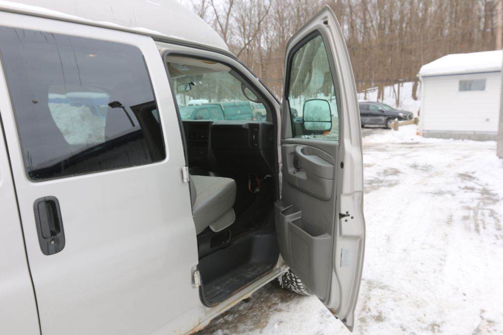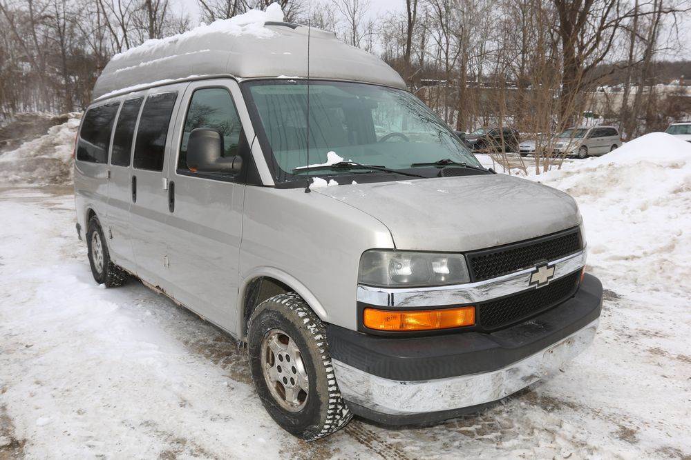 2008 Chevrolet Express LS 1500 AWD with a 5.3L V8 OHV 16V engine, VIN - 1GNFH154081170019, Odometer Reading: 100,929. Seller Reports: Body has some rust. Cloth and leather interior, power windows/locks/mirrors, steering wheel controls, AM/FM radio, CD player, heat & A/C, Millennium Wheel Chair Lift is fully functional, has 14,806 hours, and is Model: NL919IBTB-2. Runs and drives. Keys, Title, and Bill Of Sale available.