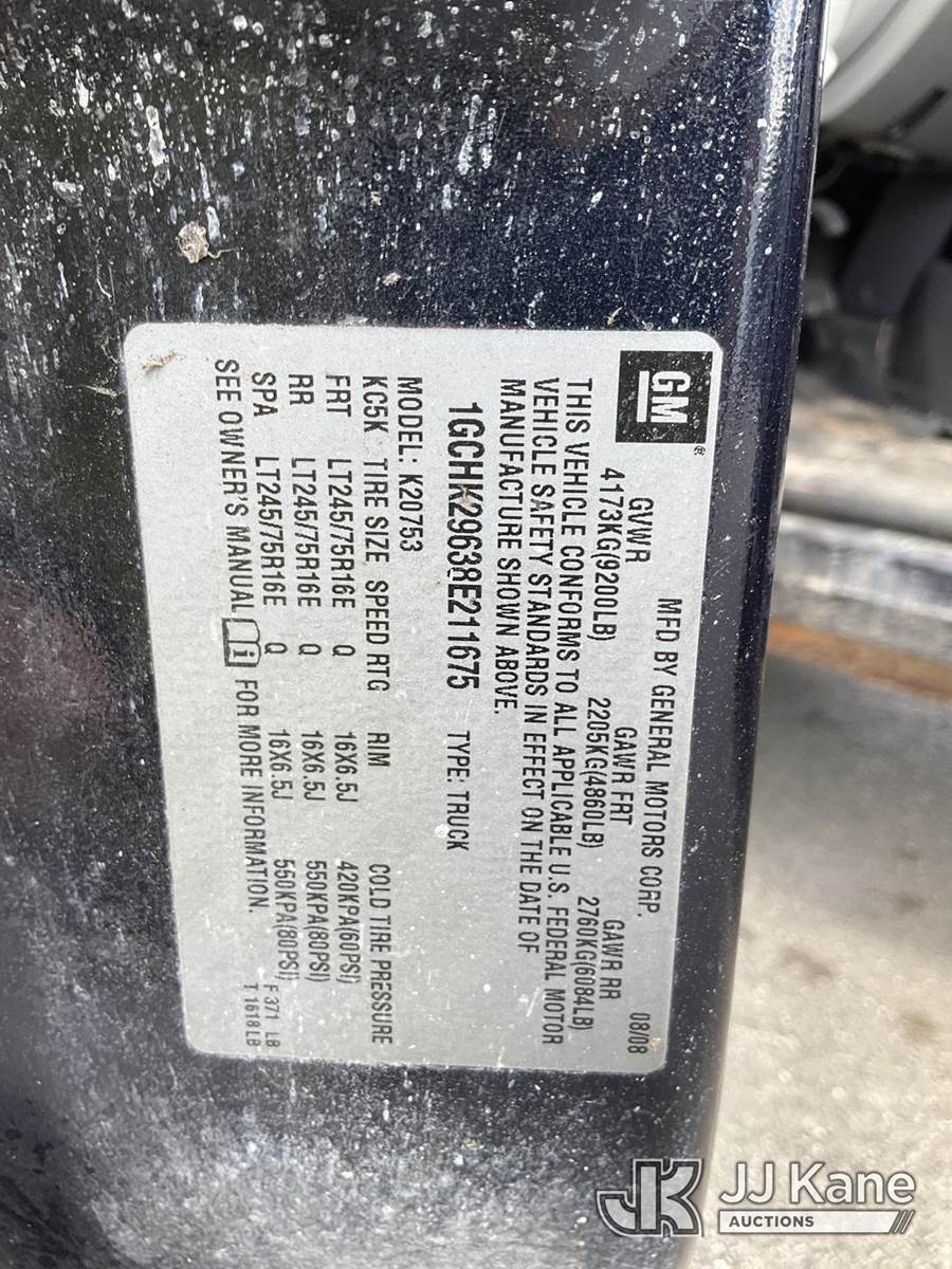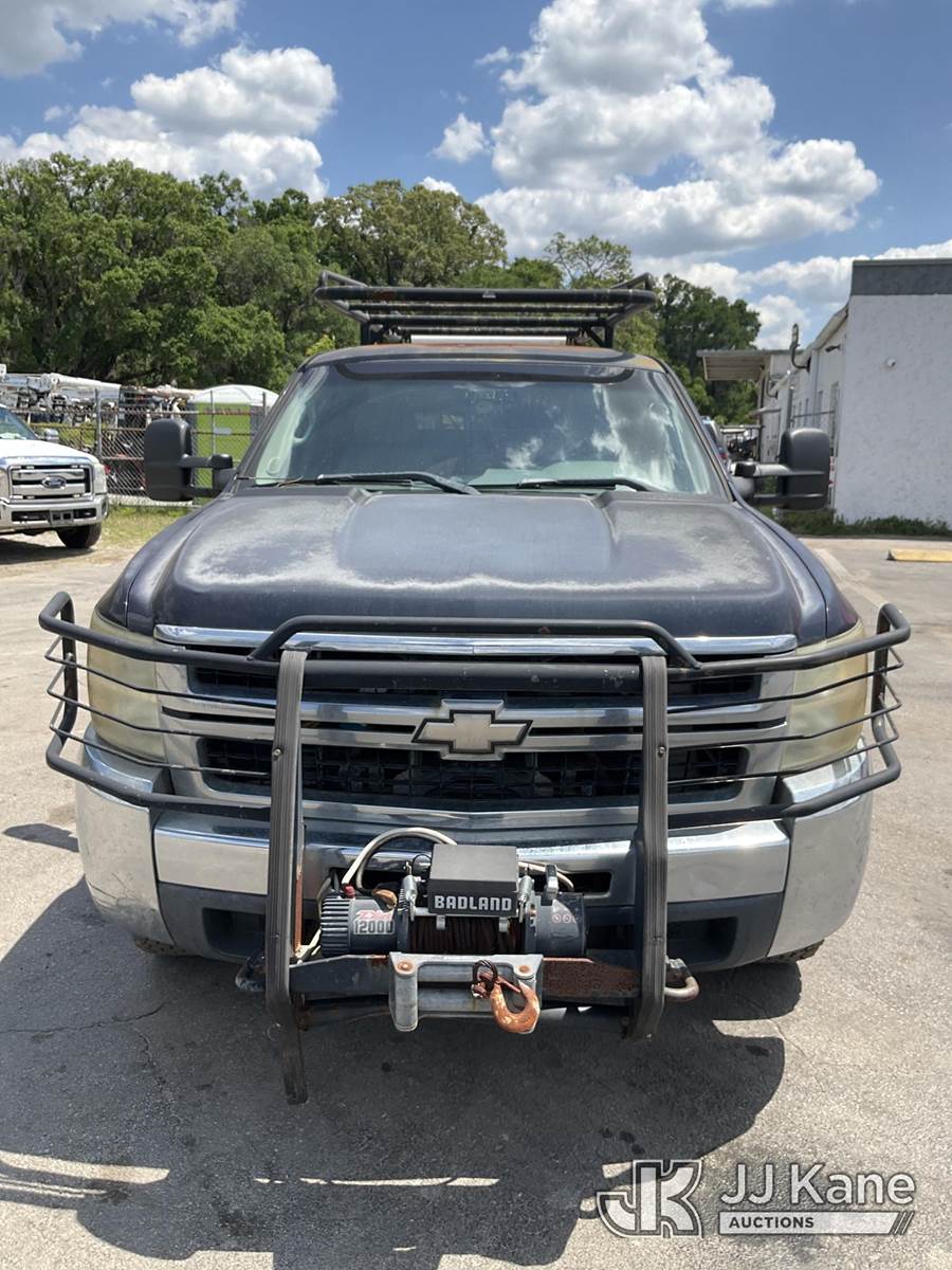 2008 Chevrolet Silverado 2500HD 4x4 Extended-Cab Service Truck, 6.6L V8 OHV 32V Diesel, Auto, A/C, with front winch, (215,191 miles) (Runs With Jumpstart, Moves, Check Engine Light Is On, Airbag Light Is On, Driver Side Door Latch Is Missing Door Does Not Stay Closed, Can Not Be Safely Driven!!!! Has Minor Body, Paint And Rust Damage) This is a Titled Item NOTE: This unit is being sold AS IS/WHERE IS via Timed Auction and is located in Ocala, FL. Inspection & preview days for this unit are by appointment only; please contact us at contact@jjkane.com or 84-Go-JJKane for more details. For more information & removal arrangements please contact Mike Lessard @ (352) 629-6677. (Buyer is responsible for removal. Assistance by consignor or JJ Kane Auctions is not assured.)