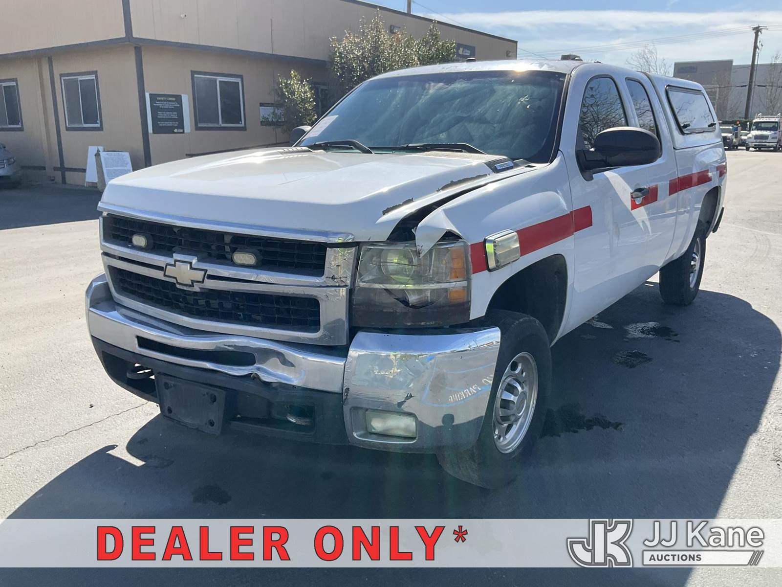 2008 Chevrolet Silverado 2500HD Extended-Cab Pickup Truck, s/n 1GCHK29K58E183245, 6.0L V8 OHV 16V Gas, 4WD, 6-Speed Automatic, A/C, with tow package, camper Shell, (177,727 miles) (Runs & Moves) (Front End Damage, Interior Stripped Of Parts, 4x4 Needs Service, Drives Rough) (Bidding Restricted to Licensed Vehicle Dealers Only), This is a Titled Item NOTE: This unit is being sold AS IS/WHERE IS via Timed Auction and is located in Jurupa Valley, CA. Inspection & preview days for this unit are the 2 business days prior to the first day of items closing for this auction, item is located at 4510 Muth Way Jurupa Valley, CA 92509 and hours of operations are 8a-4p. For pre-sale questions, please contact please contact Office Staff @ (310) 353-7140. Dealer License Number 45696. (Buyer is responsible for removal. Assistance by consignor or JJ Kane Auctions is not assured.)