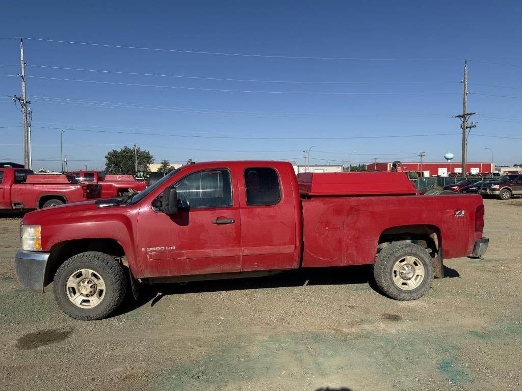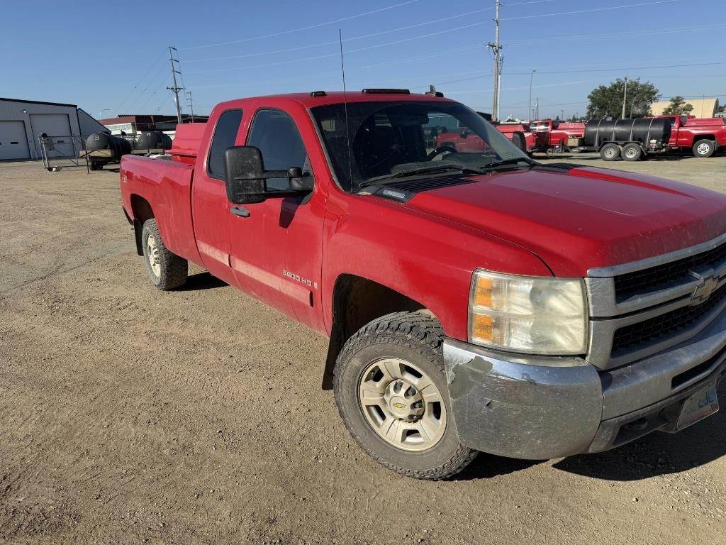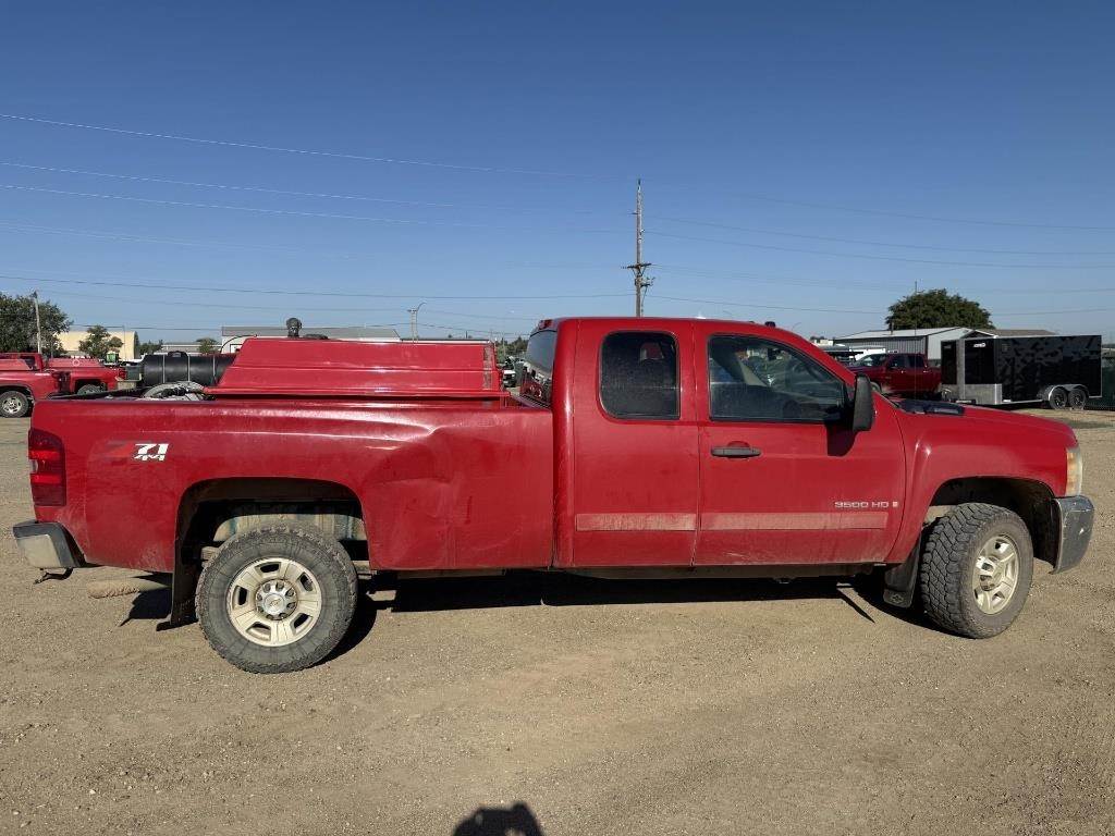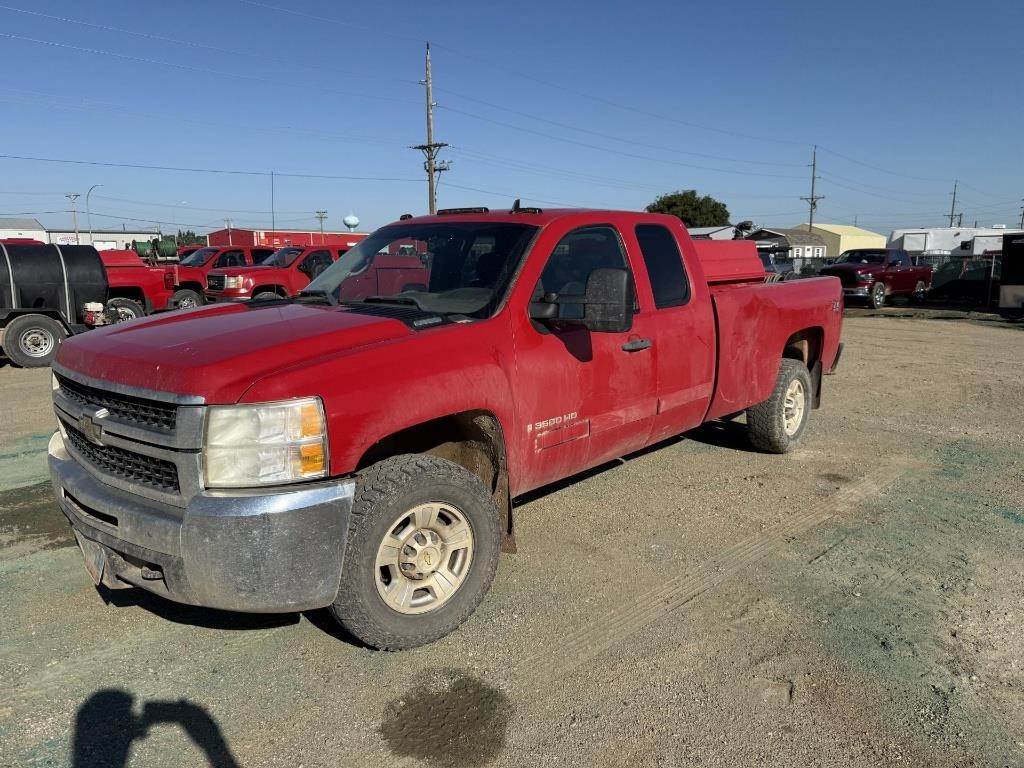 Location: Williston, ND 2008 Silverado 3500HD, Extended Cab Log Bed, 4x4, Heat/A/C, 6.0L Gas, Approx. 8' Bed, Radio, Power Window & Locks (Seller Note, Sprayer NOT INCLUDED) VIN: 1GCHK39K48E197319 Miles Shown: 208105