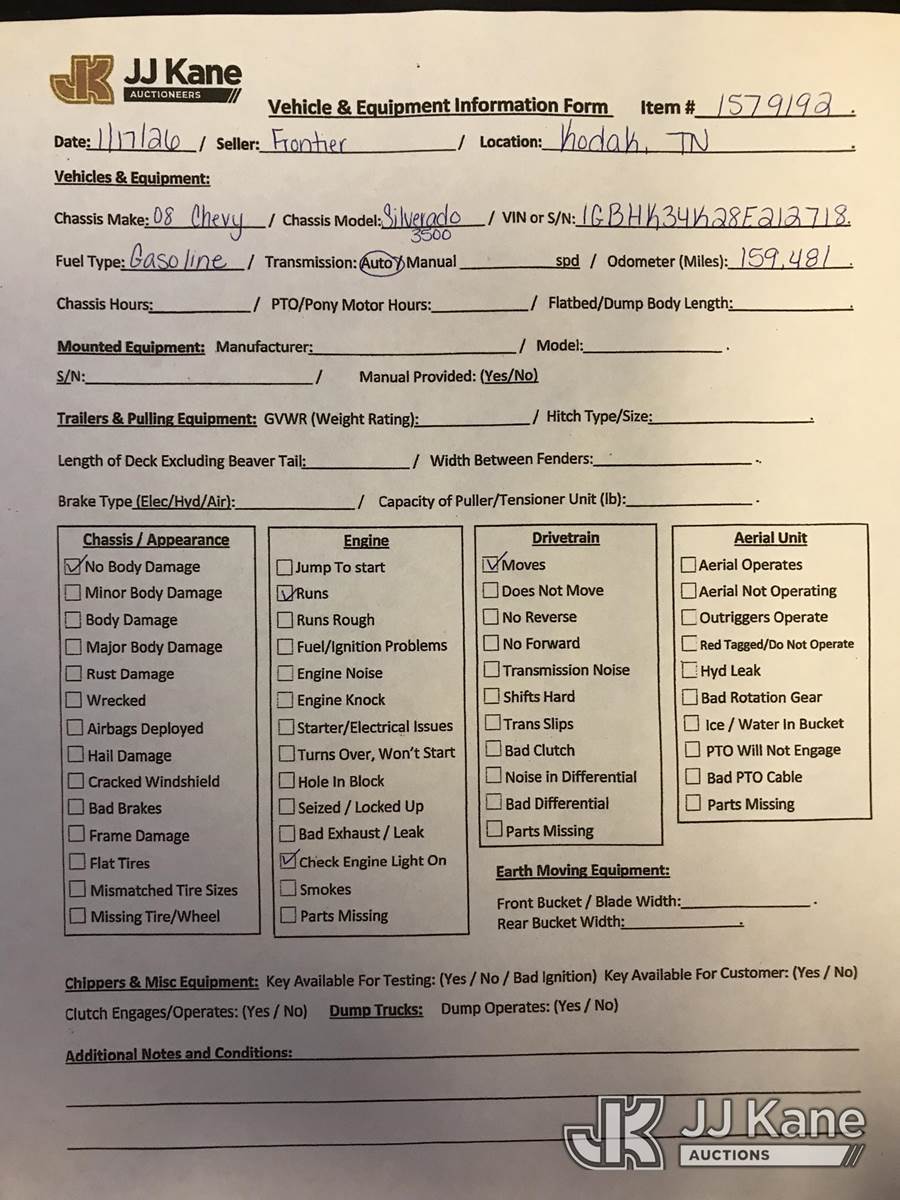 2008 Chevrolet Silverado 3500HD 4x4 Enclosed Service Truck, 6.0L V8 OHV 16V gas, 6-Speed Automatic, A/C, (159,481 miles) (Runs & Moves) (Check Engine Light On) This is a Titled Item NOTE: This unit is being sold AS IS/WHERE IS via Timed Auction and is located in Kodak, TN. For more information & removal arrangements please contact Allen Patrick @ allen.patrick@jjkane.com (Buyer is responsible for removal. Assistance by consignor or JJ Kane Auctions is not assured.)