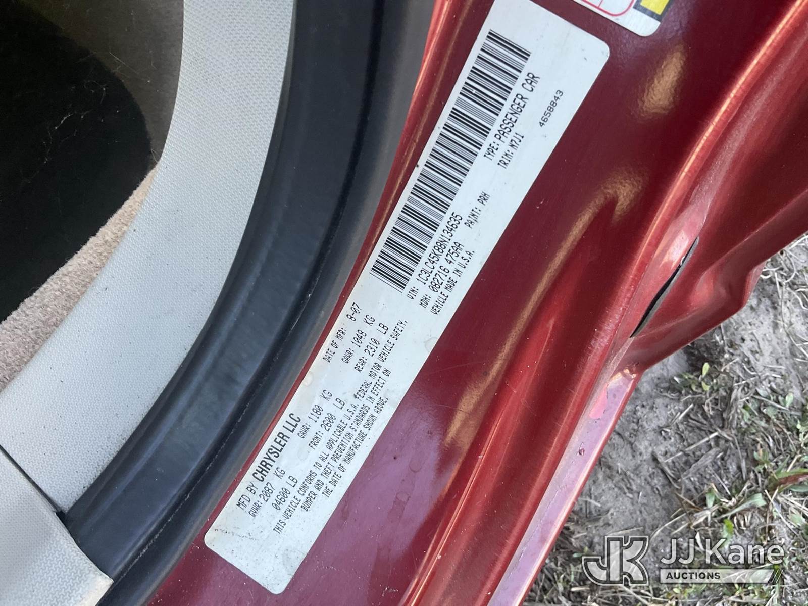 2008 Chrysler Sebring 2-Door Convertible, 2.4L L4 DOHC 16V gas, 4-Speed Automatic, FWD, A/C, (94,787 miles) (Runs & Moves, Roof Operates)(Paint Damage) This is a Titled Item NOTE: This unit is being sold AS IS/WHERE IS via Timed Auction and is located in Thonotosassa, FL. Inspection & preview days for this unit are the 2 business days prior to the first day of items closing for this auction, item is located at 11720 N US 301 Thonotosassa, Fl 33592 and hours of operations are 8a-4p. For pre-sale questions, please contact Office Staff @ (813) 986-2485. (Buyer is responsible for removal. Assistance by consignor or JJ Kane Auctions is not assured.)