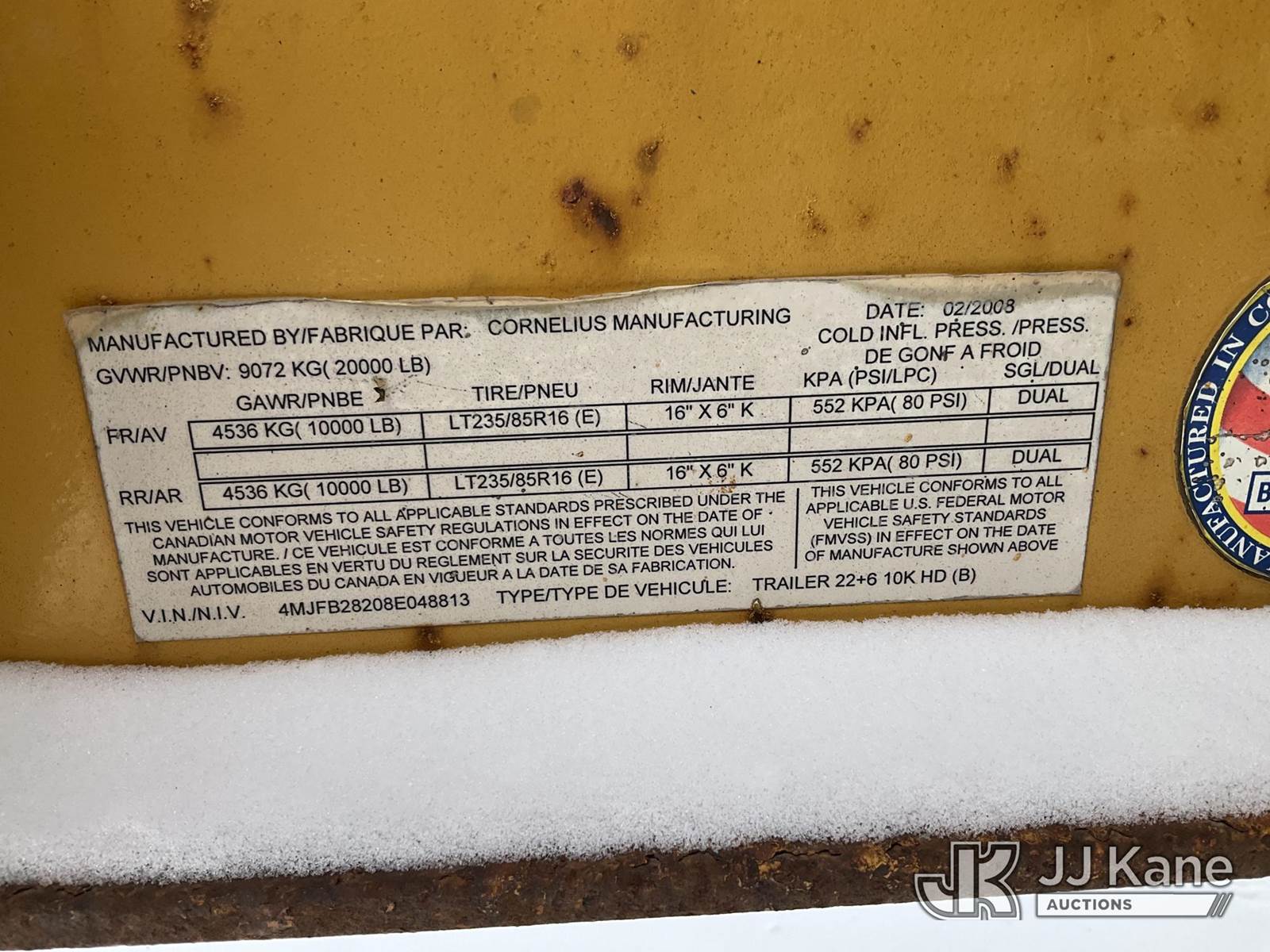 2008 Corn Pro T/A Tagalong Flatbed Trailer, (Rust Damage) This is a Titled Item NOTE: This unit is being sold AS IS/WHERE IS via Timed Auction and is located in Charlotte, MI. Inspection & preview days for this unit are the 2 business days prior to the first day of items closing for this auction, item is located at 750 Island Hwy Charlotte, MI 48813 and hours of operations are 8a-4p. For pre-sale questions, please contact Corey Cook at (517) 983-0796 or corey.cook@jjkane.com (Buyer is responsible for removal. Assistance by consignor or JJ Kane Auctions is not assured.)