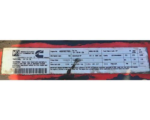 ISB, 6.7L, CM2150; 200 HP; S/N 46892705; CPL 279; DOM 2008