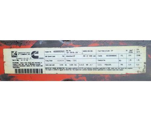 ISB 6.7L, CM2150, 200 HP, S/N 46936023, CPL 3238, DOM 2008