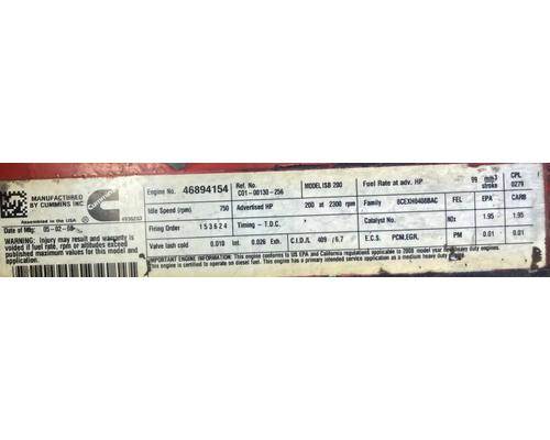 ISB 6.7L, CM2150, 200 HP, S/N 46894154, CPL 279, DOM 2008