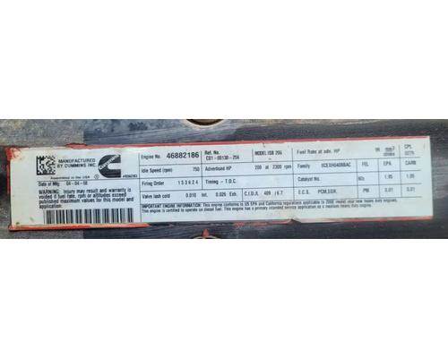 ISB L6, 6.7L, 200 HP, S/N 46882186, CPL 279, DOM 2008