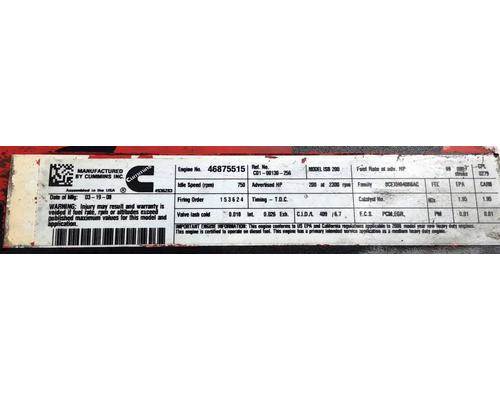 ISB, 6.7L, CM2150; 200 HP; S/N 46875515; CPL 0279; DOM 2008