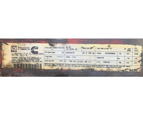 ISB, 6.7L, CM2150; 200 HP; S/N 46874976; CPL 0279; DOM 2008