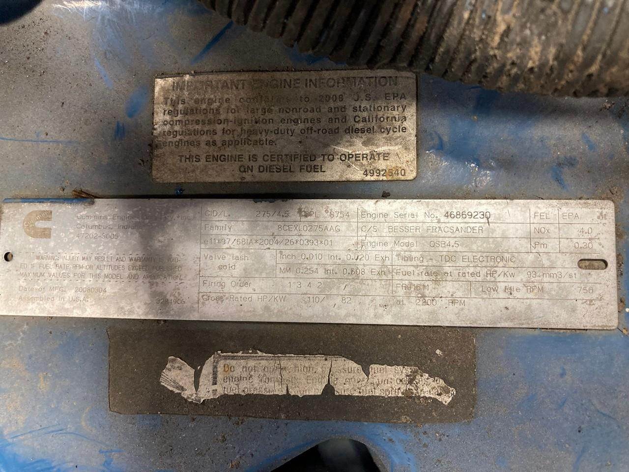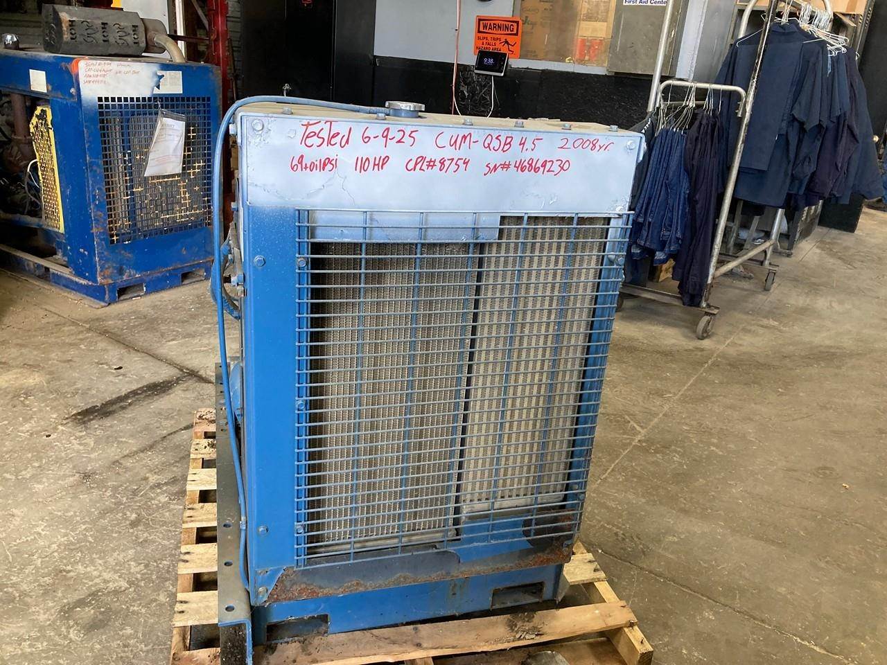 GOOD USED 2008 CUMMINS QSB4.5 HYDRAULIC DIESEL POWER UNIT FOR SALE at ADELMAN’S in CANTON, OHIO. 9,323 HOURS SHOWING ON ECM, RUN TESTED and COMPLETE with RADIATOR & CHARGE AIR COOLER, STARTER, ALTERNATOR, & PUMP DRIVE. COMES WITH CONTROL BOX. 110 HP @ 2200 RPM, DDI, ECM, TC, & CAC EMISSIONS CONTROL SYSTEMS, TIER 3, 8CEXL0275AAG FAMILY #, 8754 CPL#, & CM850 with COMMON RAIL FUEL SYSTEM. 70+ LBS OIL PRESSURE.