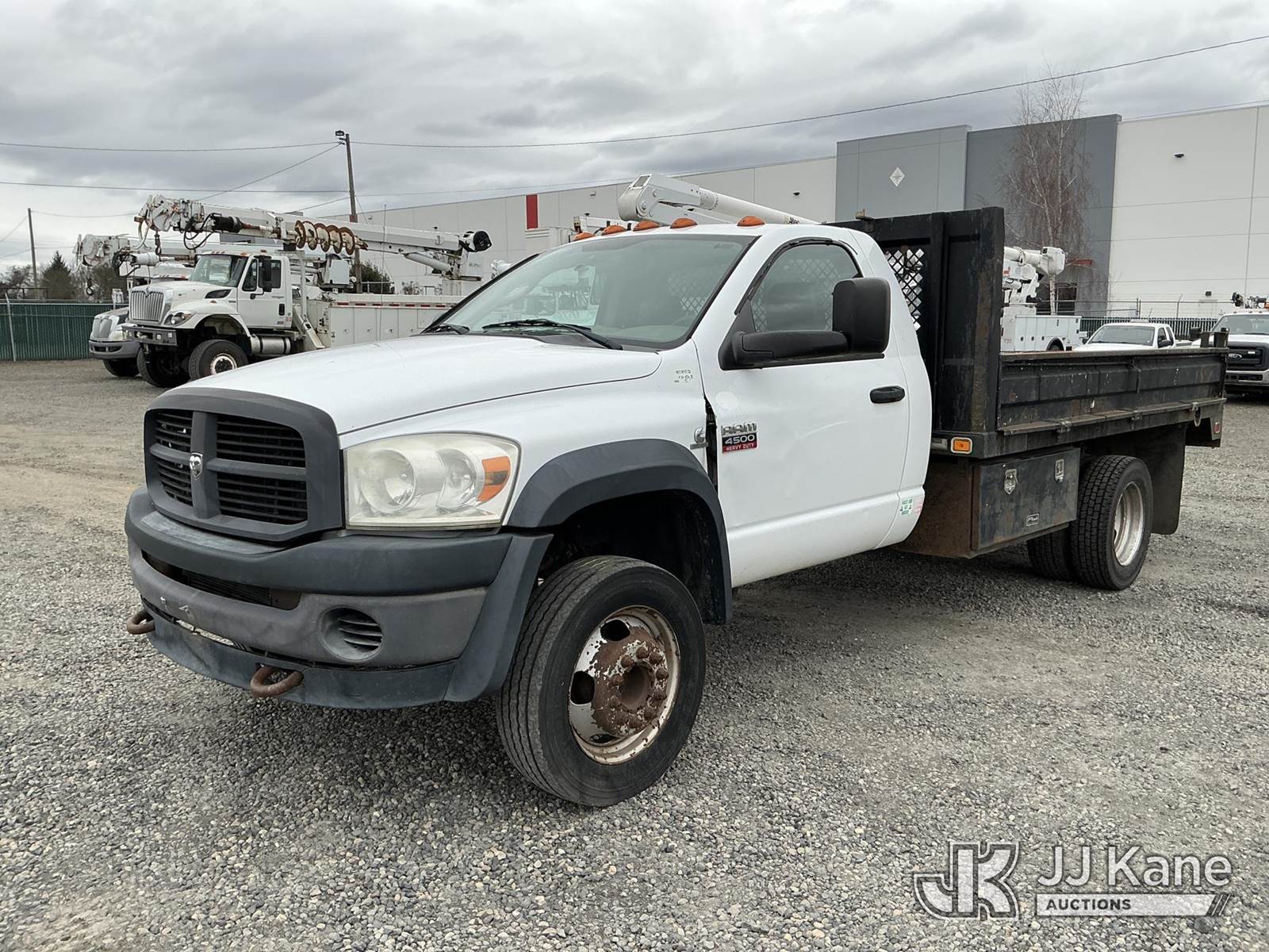 2008 Dodge Ram 4500 Flatbed Truck, 6.7L Diesel manual, A/C, (241,915 miles) (Runs & Moves) (Drivers Side Door Damage) This is a Titled Item NOTE: This unit is being sold AS IS/WHERE IS via Timed Auction and is located in Portland, OR. Inspection & preview days for this unit are the 2 business days prior to the first day of items closing for this auction, item is located at 13817 NE Sandy Blvd Portland, OR 97230 and hours of operations are 8a-4p. For pre-sale questions, please contact Tony Tully @ (503)-307-1348. Dealer License Number DL1391. (Buyer is responsible for removal. Assistance by consignor or JJ Kane Auctions is not assured.)