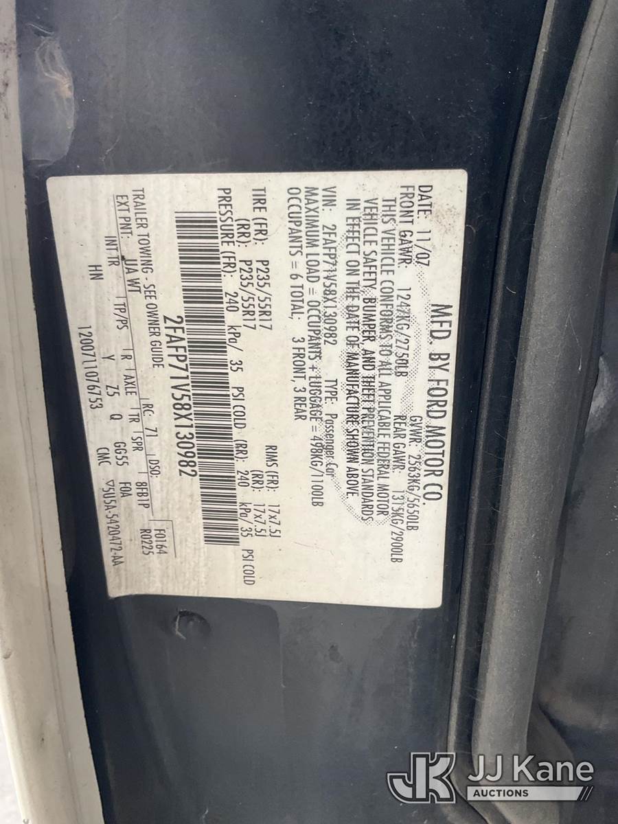 2008 Ford Crown Victoria Police Interceptor 4-Door Sedan, 4.6L V8 SOHC 16V FFV RWD, 4-Speed Automatic, A/C, (102,504 miles) (Runs & Moves) (Interior Stripped Of Parts, Missing Stereo, Broken Front Windshield) (Bidding Restricted to Licensed Vehicle Dealers Only), This is a Titled Item NOTE: This unit is being sold AS IS/WHERE IS via Timed Auction and is located in Jurupa Valley, CA. Inspection & preview days for this unit are the 2 business days prior to the first day of items closing for this auction, item is located at 4510 Muth Way Jurupa Valley, CA 92509 and hours of operations are 8a-4p. For pre-sale questions, please contact please contact Office Staff @ (310) 353-7140. Dealer License Number 45696. (Buyer is responsible for removal. Assistance by consignor or JJ Kane Auctions is not assured.)