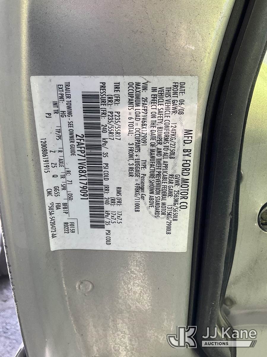 2008 Ford Crown Victoria Police Interceptor 4-Door Sedan, 4.6L V8 SOHC 16V FFV RWD, 4-Speed Automatic, (147,080 miles) (Not Running, Conditions Unknown) (Missing Transmission, Engine Bay Stripped Of Parts, Must Be Towed) (Branded Title - Police Vehicle) (Bidding Restricted to Licensed Vehicle Dealers Only), This is a Titled Item NOTE: This unit is being sold AS IS/WHERE IS via Timed Auction and is located in Jurupa Valley, CA. Inspection & preview days for this unit are the 2 business days prior to the first day of items closing for this auction, item is located at 4510 Muth Way Jurupa Valley, CA 92509 and hours of operations are 8a-4p. For pre-sale questions, please contact please contact Office Staff @ (310) 353-7140. Dealer License Number 45696. (Buyer is responsible for removal. Assistance by consignor or JJ Kane Auctions is not assured.)