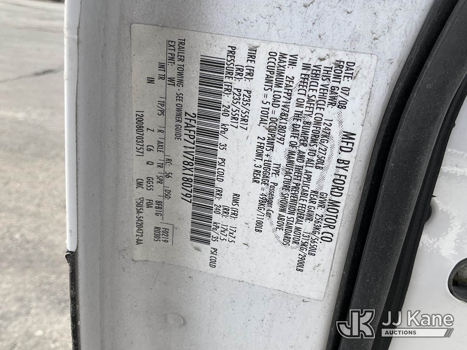 2008 Ford Crown Victoria Police Interceptor 4-Door Sedan, 8-cyl gas, Auto, A/C, (86,051 miles) (Runs & Moves) (No Front Bumper, Airbag Disabled ) This is a Titled Item NOTE: This unit is being sold AS IS/WHERE IS via Timed Auction and is located in Salt Lake City, UT. Inspection & preview days for this unit are the 2 business days prior to the first day of items closing for this auction, item is located at 2353 N Redwood Rd Salt Lake City, UT 84116 and hours of operations are 8a-4p. Titles executed exactly as bidder registered. Ensure your name and/or business name and address in JJ Kane and/or ProxiBid is correct before bidding. For pre-sale questions, please contact Office Staff @ (801) 519-0123. (Buyer is responsible for removal. Assistance by consignor or JJ Kane Auctions is not assured.)