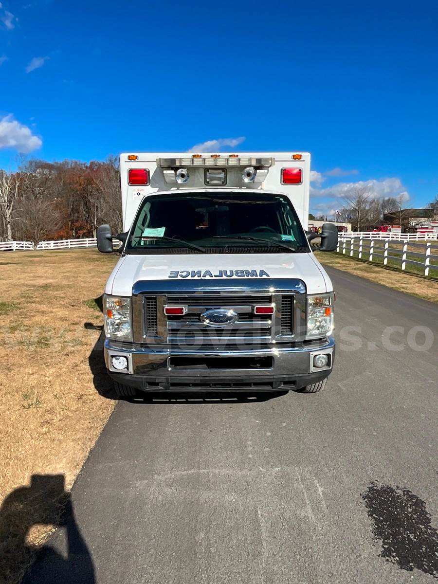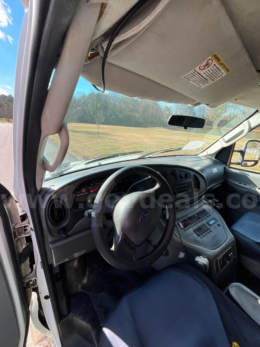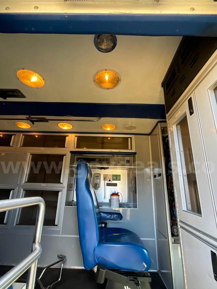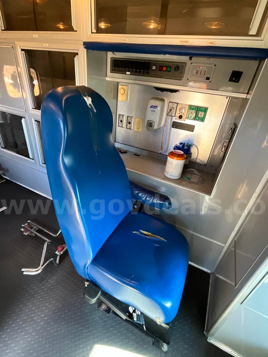 2008 Ford Econoline E350 SuperDuty - CUTAWAY, 6.0L DIESEL MedTEC Ambulance Body Ford Automatic Transmission Interior Medical Cabinet Rear Seat - Torn (shown in photo) Paint - Minor deficiencies, paint fading from age, striping chipping away Lighting - Most of the DOT, Emergency, Cab and scene lighting is either dim or needs to be replaced due to bad bulbs, faded lenses or other. Heat - Module heat does not appear to be functioning. Front Cab has some upholstery issues. Head liner in rough shape and both captains chairs need upholstery work.