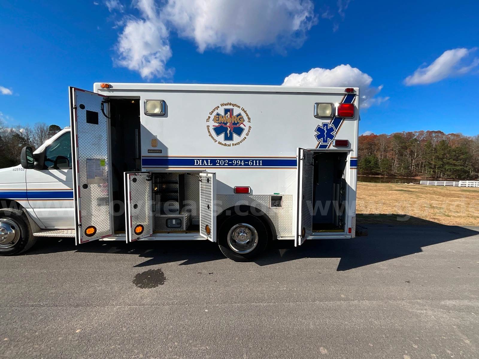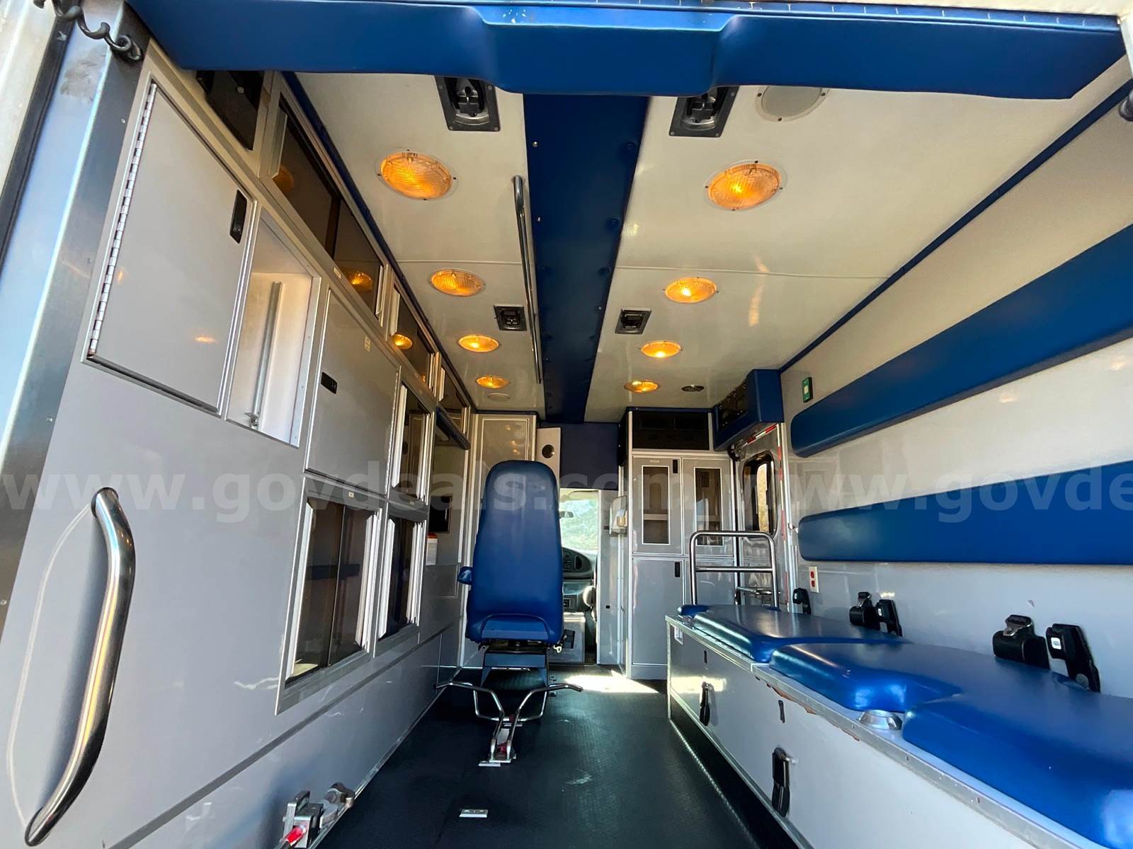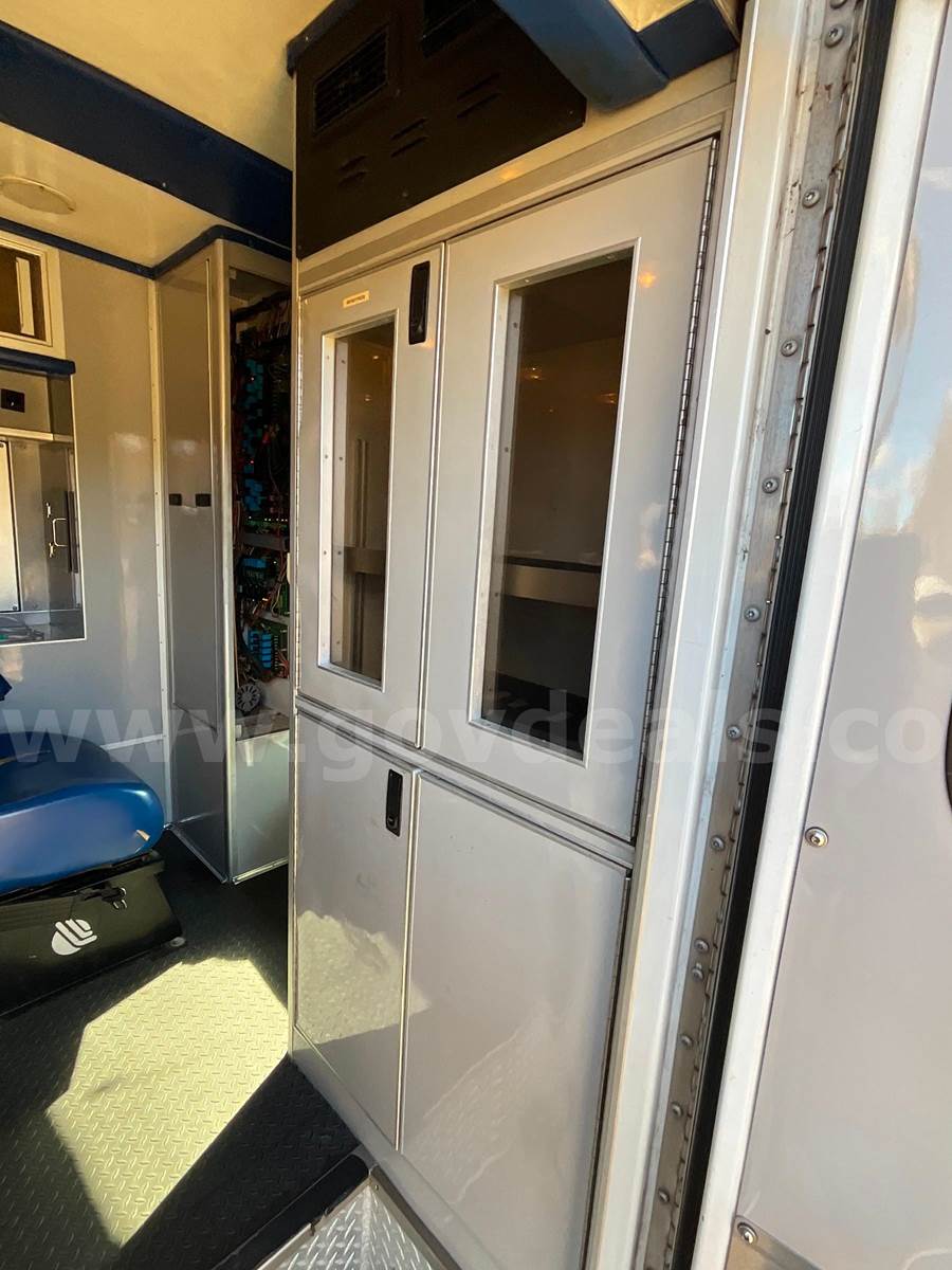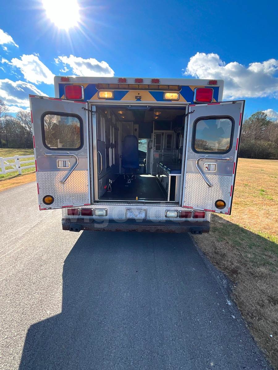 2008 Ford Econoline E350 SuperDuty - CUTAWAY, 6.0L DIESEL MedTEC Ambulance Body Ford Automatic Transmission Interior Medical Cabinet Rear Seat - Torn (shown in photo) Paint - Minor deficiencies, paint fading from age, striping chipping away Lighting - Most of the DOT, Emergency, Cab and scene lighting is either dim or needs to be replaced due to bad bulbs, faded lenses or other. Heat - Module heat does not appear to be functioning. Front Cab has some upholstery issues. Head liner in rough shape and both captains chairs need upholstery work.