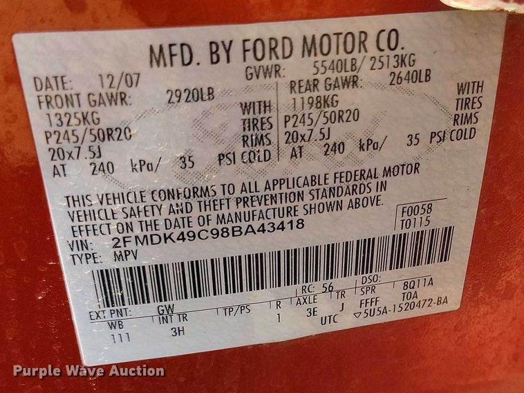 VIN: 2FMDK49C98BA43418