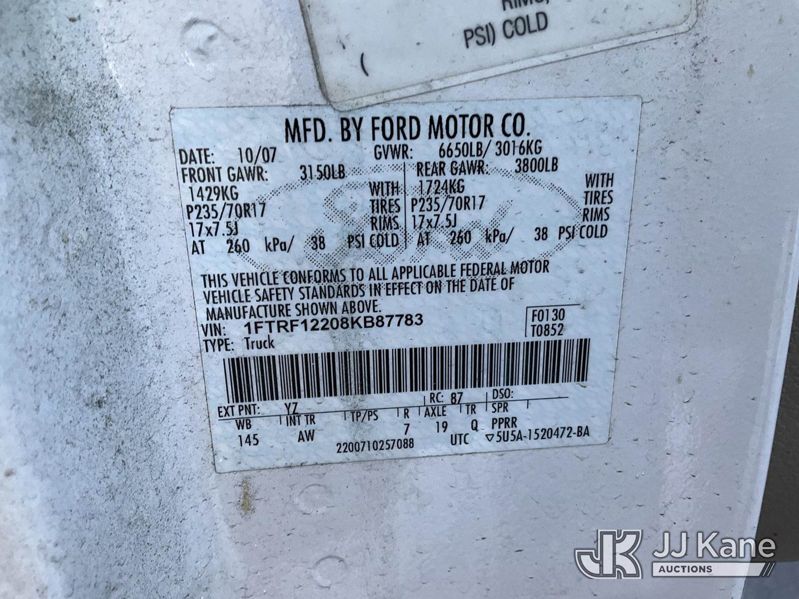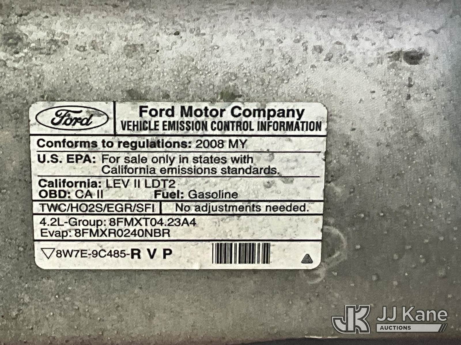 2008 Ford F-150 Access-Cab Pickup Truck, 6-cyl gas, 4-Speed Automatic, A/C, with Ladder Rack, Camper Shell, (103,070 miles) (Runs & Moves) This is a Titled Item NOTE: This unit is being sold AS IS/WHERE IS via Timed Auction and is located in Jurupa Valley, CA. Inspection & preview days for this unit are the 2 business days prior to the first day of items closing for this auction, item is located at 4510 Muth Way Jurupa Valley, CA 92509 and hours of operations are 8a-4p. For pre-sale questions, please contact please contact Office Staff @ (310) 353-7140. Dealer License Number 45696. (Buyer is responsible for removal. Assistance by consignor or JJ Kane Auctioneers is not assured.)