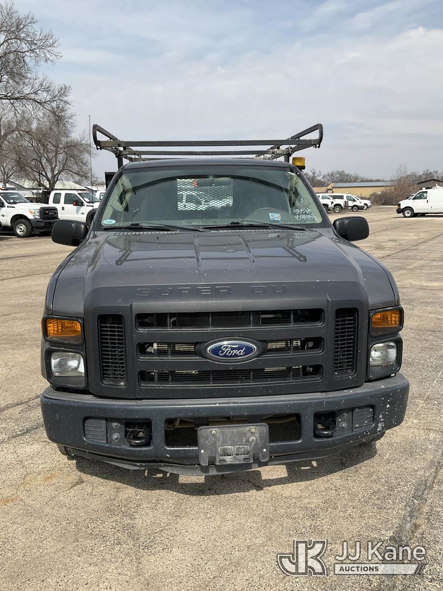 2008 Ford F-250 SD Flatbed/Service Truck, 8-cyl gas, Auto, A/C, with ladder rack, side boxes, (126,595 miles) (Runs & Moves) (Check Engine Light On, Battery Light On) This is a Titled Item NOTE: This unit is being sold AS IS/WHERE IS via Timed Auction and is located in South Beloit, IL. Inspection & preview days for this unit are the 2 business days prior to the first day of items closing for this auction, item is located at 14354 Dearborn Ave South Beloit, IL and hours of operations are 8a-4p. For pre-sale questions, please contact Derek Eklund at (608) 904-0618 or (derek.eklund@jjkane.com). (Buyer is responsible for removal. Assistance by consignor or JJ Kane Auctions is not assured.)