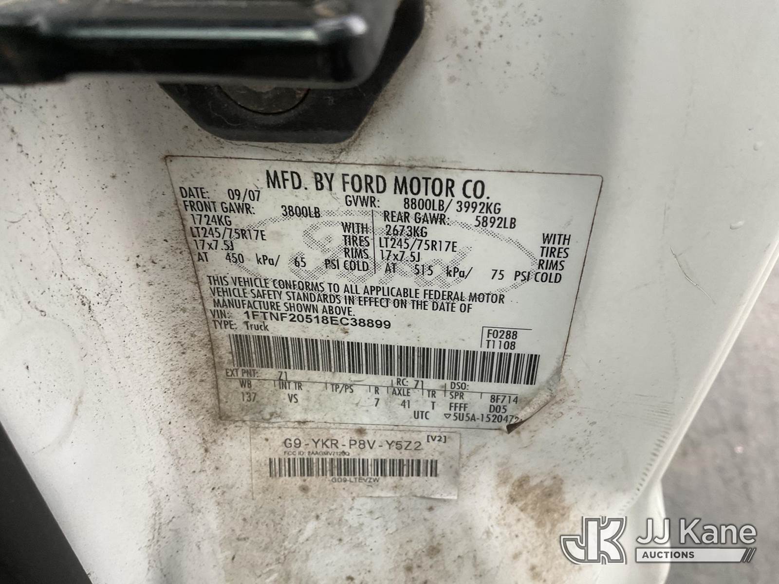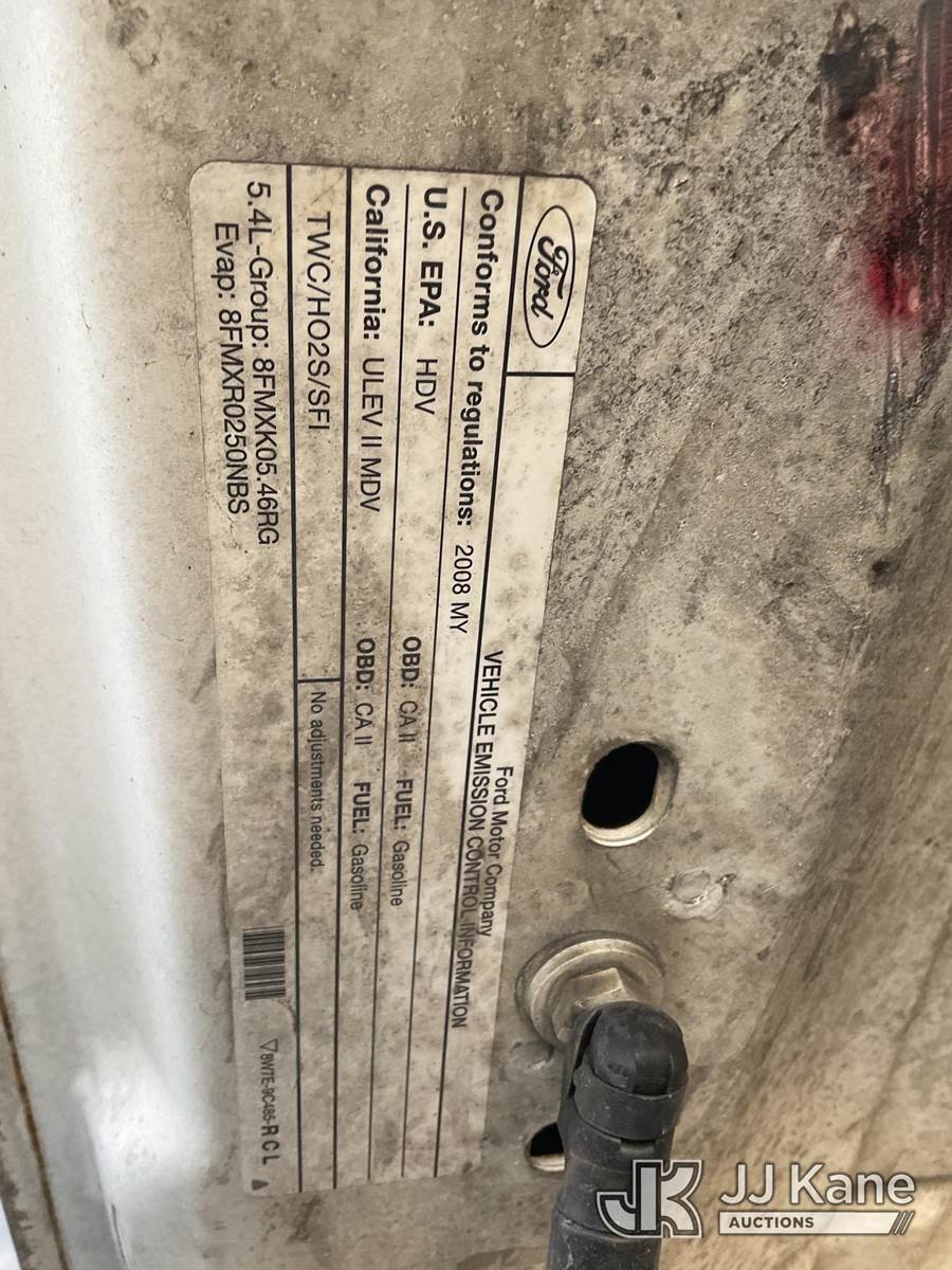 2008 Ford F-250 SD Pickup Truck, s/n 1FTNF20518EC38899, 8-cyl gas, Auto, A/C, with tow package, (78,765 miles) (Runs & Moves) This is a Titled Item NOTE: This unit is being sold AS IS/WHERE IS via Timed Auction and is located in Jurupa Valley, CA. Inspection & preview days for this unit are the 2 business days prior to the first day of items closing for this auction, item is located at 4510 Muth Way Jurupa Valley, CA 92509 and hours of operations are 8a-4p. For pre-sale questions, please contact please contact Office Staff @ (310) 353-7140. Dealer License Number 45696. (Buyer is responsible for removal. Assistance by consignor or JJ Kane Auctions is not assured.)