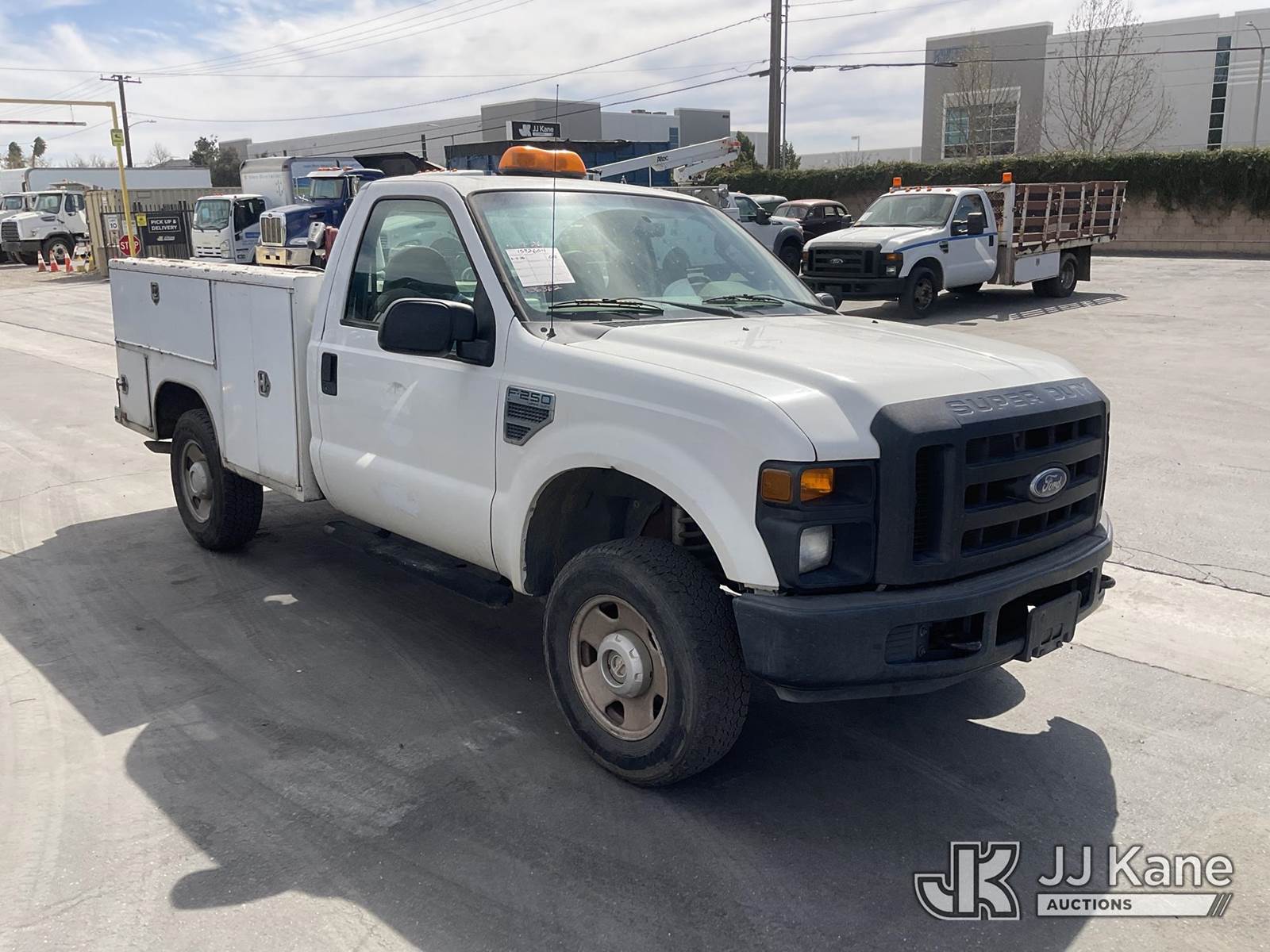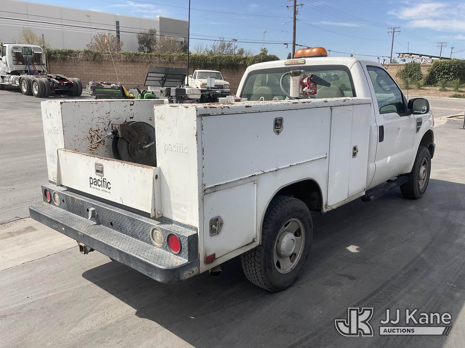 2008 Ford F-250 SD Service Truck, 8-cyl gas, 4WD, Auto, A/C, with Tow Package, Aux Fuel Tank & Pump, Compressor, (97,103 miles) (Runs & Moves) This is a Titled Item NOTE: This unit is being sold AS IS/WHERE IS via Timed Auction and is located in Jurupa Valley, CA. Inspection & preview days for this unit are the 2 business days prior to the first day of items closing for this auction, item is located at 4510 Muth Way Jurupa Valley, CA 92509 and hours of operations are 8a-4p. For pre-sale questions, please contact please contact Office Staff @ (310) 353-7140. Dealer License Number 45696. (Buyer is responsible for removal. Assistance by consignor or JJ Kane Auctions is not assured.)