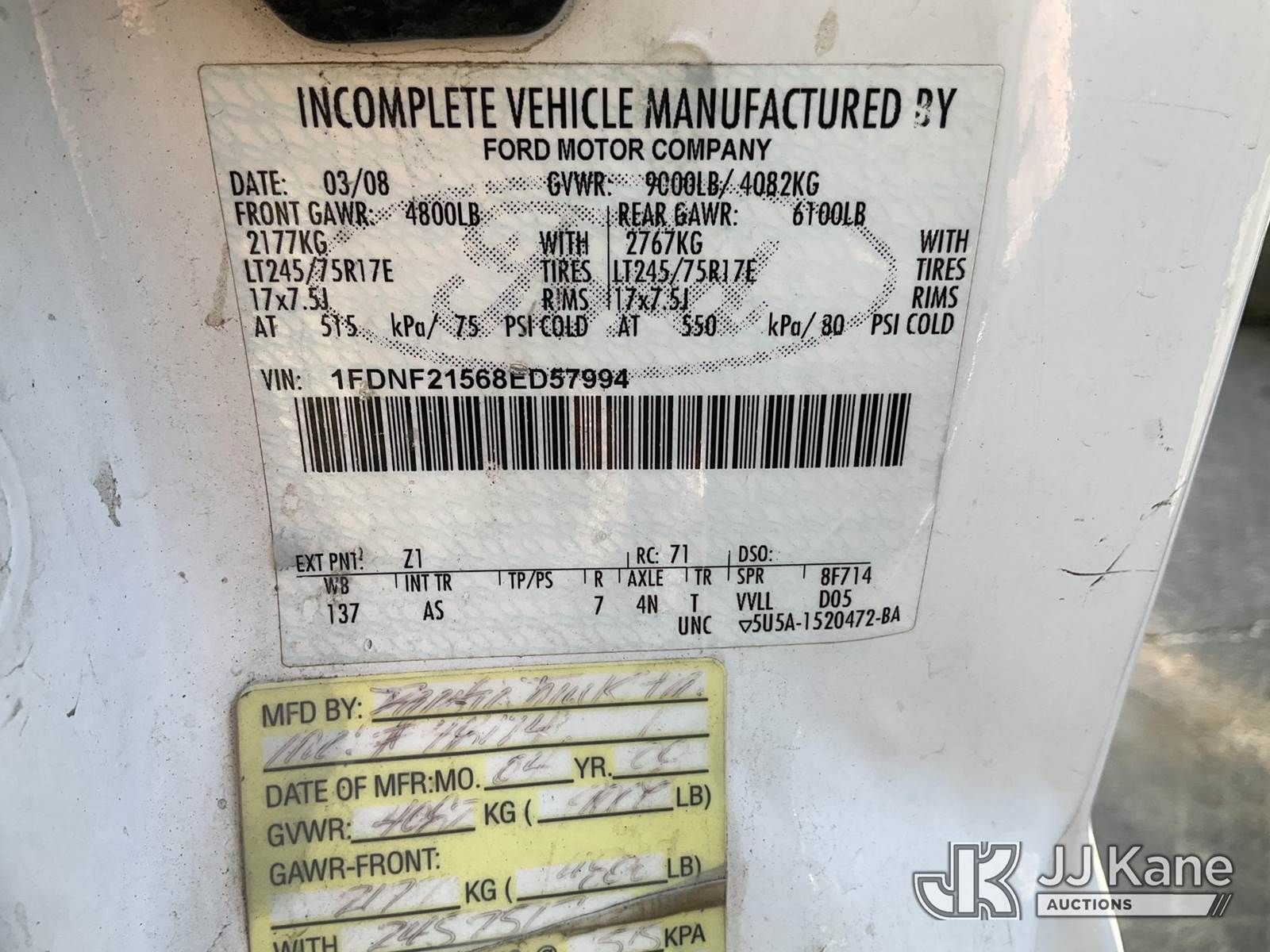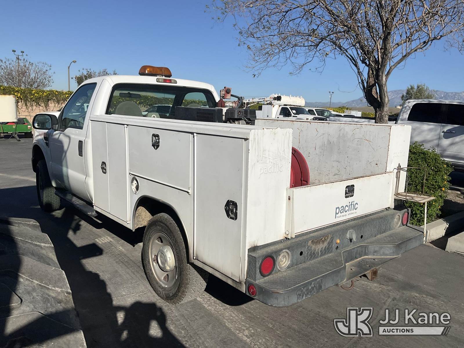 2008 Ford F-250 SD Utility Truck, 5.4L V8 SOHC 16V 4WD, GAS, Auto, A/C, with Tow package,Honda GX 160 Compressor,Diesel Fuel Tank, (121,713 miles) (Runs & Moves(Engine Light On)(P0135 /02 Sensor Heater Circuit)) This is a Titled Item NOTE: This unit is being sold AS IS/WHERE IS via Timed Auction and is located in Jurupa Valley, CA. Inspection & preview days for this unit are the 2 business days prior to the first day of items closing for this auction, item is located at 4510 Muth Way Jurupa Valley, CA 92509 and hours of operations are 8a-4p. For pre-sale questions, please contact please contact Office Staff @ (310) 353-7140. Dealer License Number 45696. (Buyer is responsible for removal. Assistance by consignor or JJ Kane Auctions is not assured.)