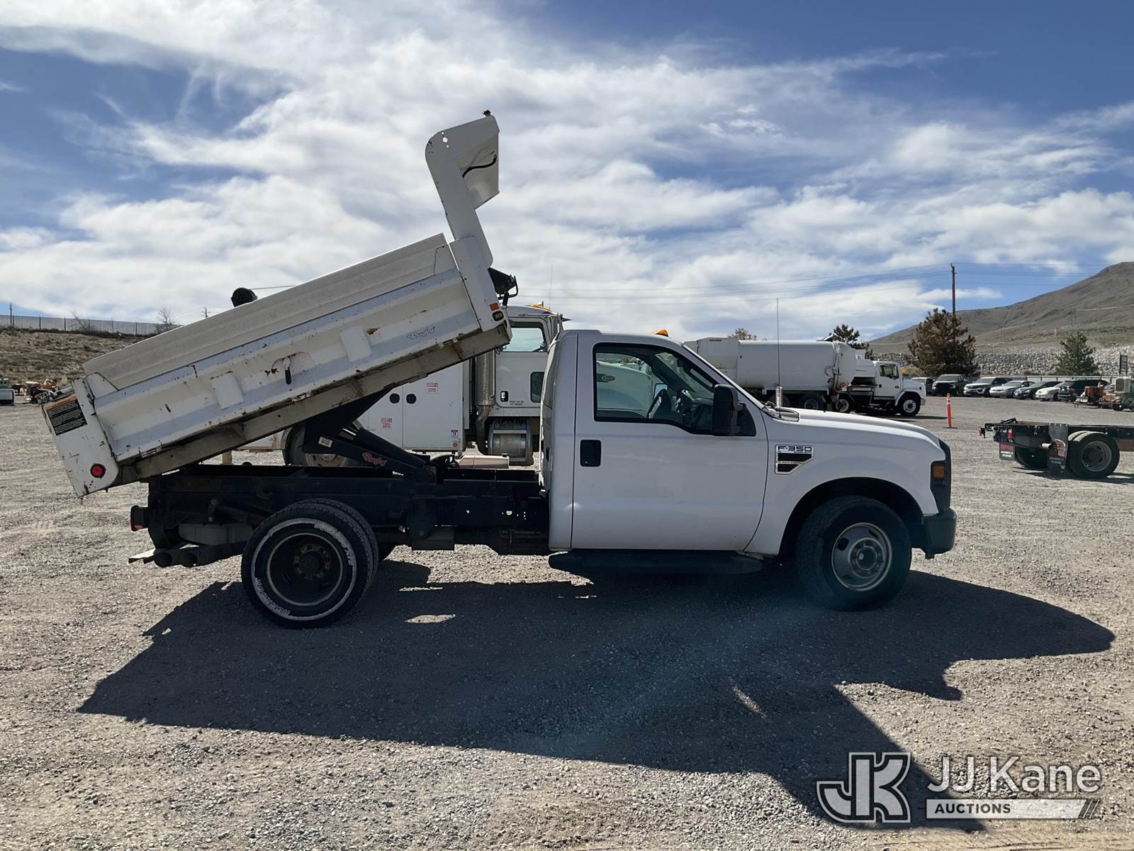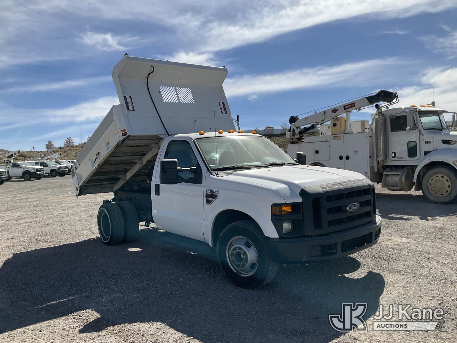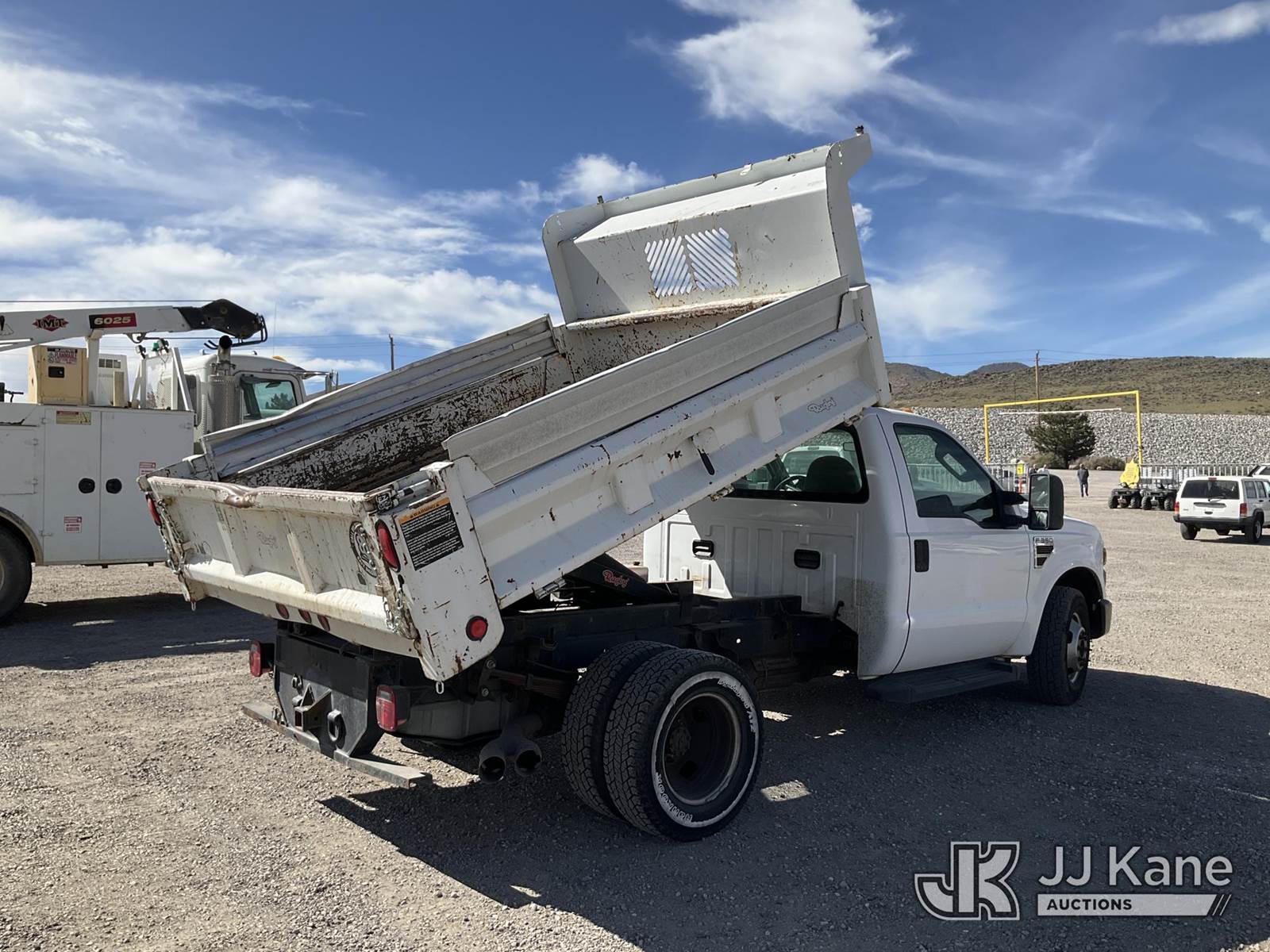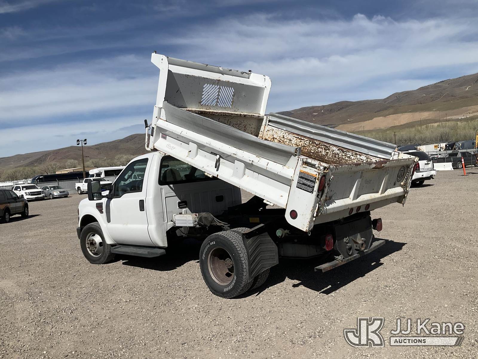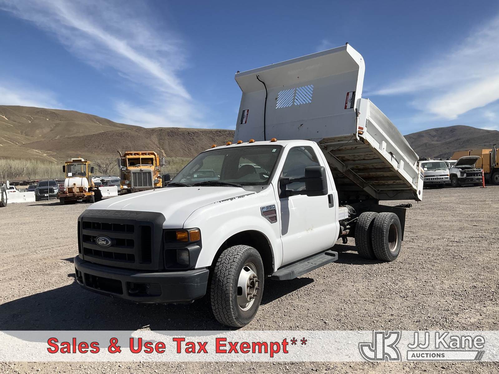 2008 Ford F-350 SD Dump Truck, 6.4L diesel, RWD, Auto, A/C, (60,179 miles) (Runs, Moves & Dump Operates) (Ripped Drivers Seat, Some Paint Blemishes) This is a Titled Item NOTE: This unit is being sold AS IS/WHERE IS via Timed Auction and is located in Sparks, NV. Inspection & preview days for this unit are the 2 business days prior to the first day of items closing for this auction, item is located at 601 Britain Dr Sparks, NV 89437 and hours of operations are 8a-4p. Titles executed exactly as bidder registered. Ensure your name and/or business name and address in JJ Kane and/or ProxiBid is correct before bidding. For pre-sale questions, please contact Office Staff @ (801) 519-0123 and provide sale date and lot number. Sparks Dealer License Number DLR000052908 / OHV000052909. (Buyer is responsible for removal. Assistance by consignor or JJ Kane Auctions is not assured.)