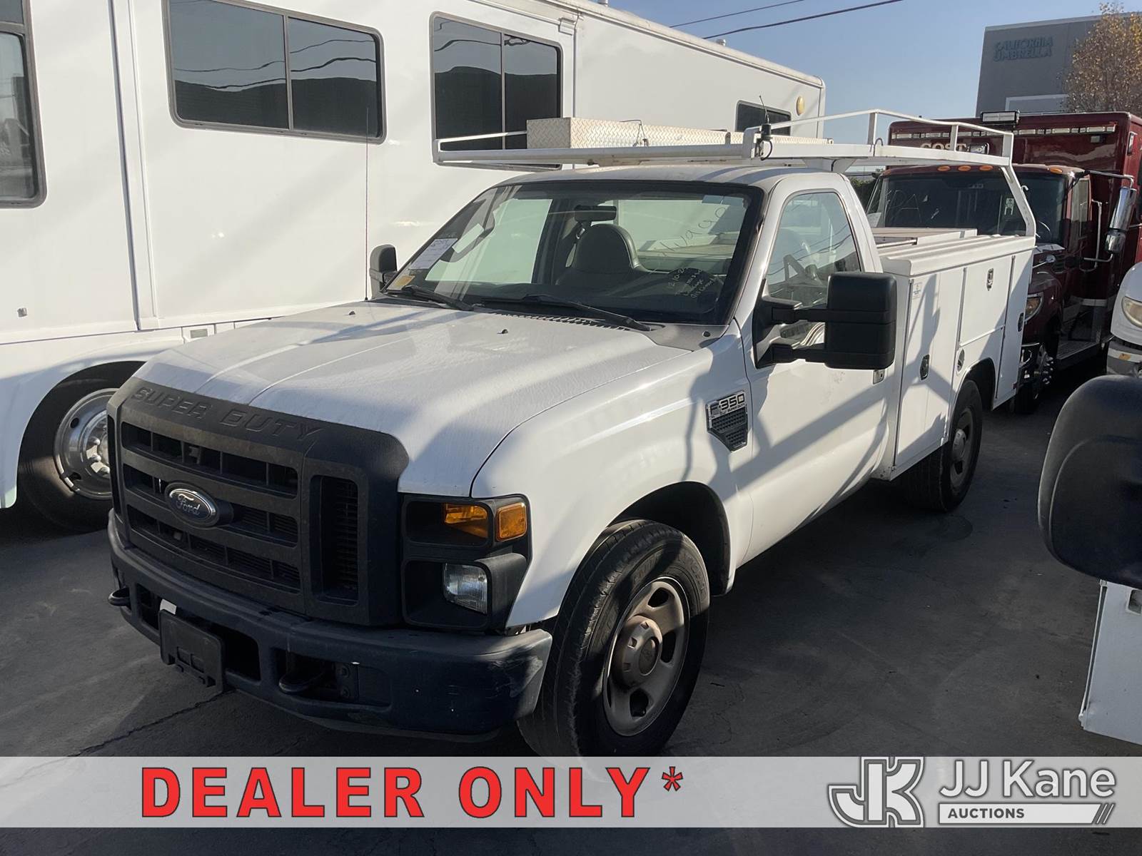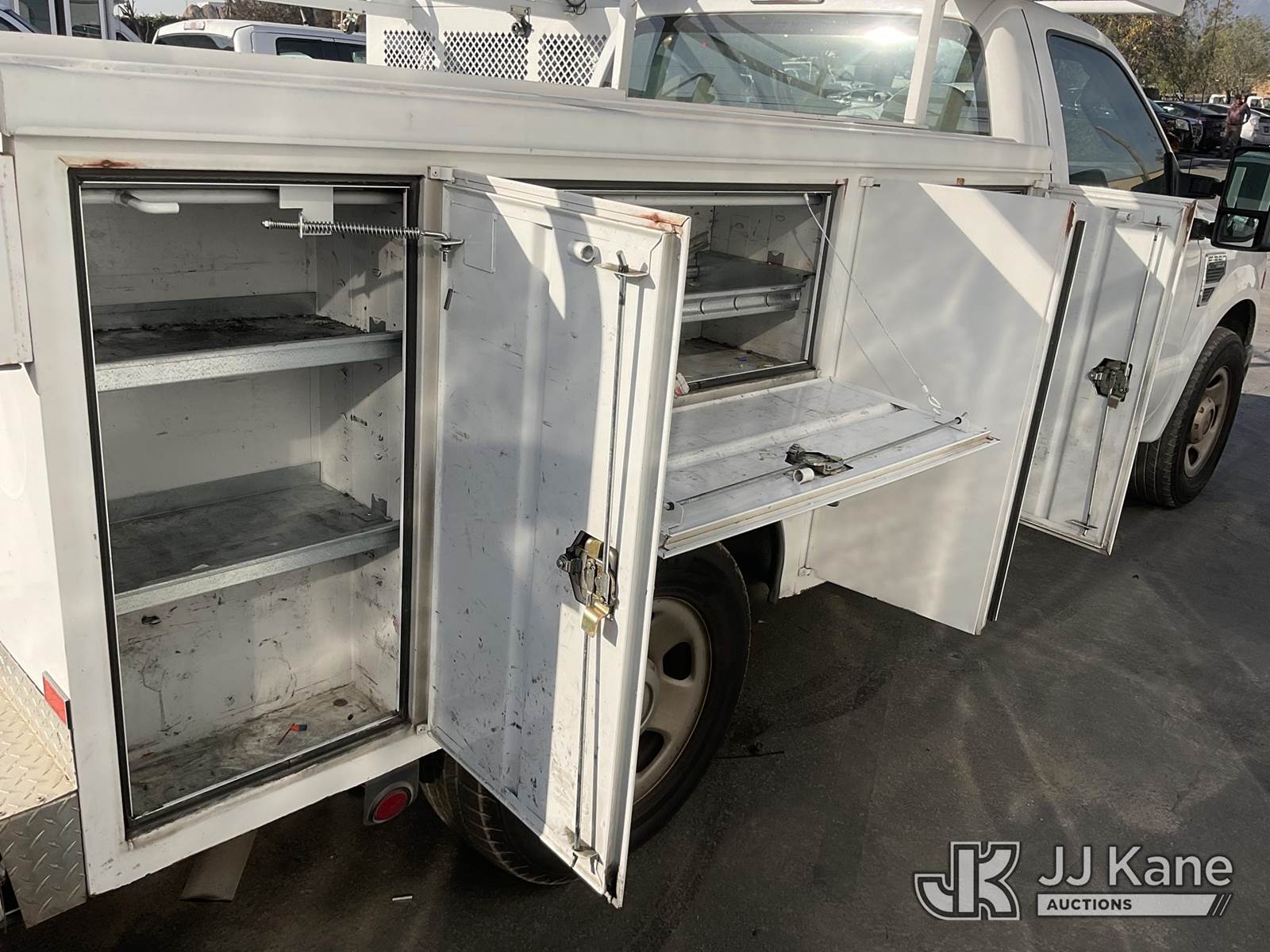2008 Ford F-350 SD Utility Truck, 8-cyl gas, Auto, A/C, with Tow Package, (273,030 miles (unverified)) (Runs & Moves) (Driver Seat Is Not Secured, Transmission Does Not Shift) (Bidding Restricted to Licensed Vehicle Dealers Only), This is a Titled Item NOTE: This unit is being sold AS IS/WHERE IS via Timed Auction and is located in Jurupa Valley, CA. Inspection & preview days for this unit are the 2 business days prior to the first day of items closing for this auction, item is located at 4510 Muth Way Jurupa Valley, CA 92509 and hours of operations are 8a-4p. For pre-sale questions, please contact please contact Office Staff @ (310) 353-7140. Dealer License Number 45696. (Buyer is responsible for removal. Assistance by consignor or JJ Kane Auctions is not assured.)