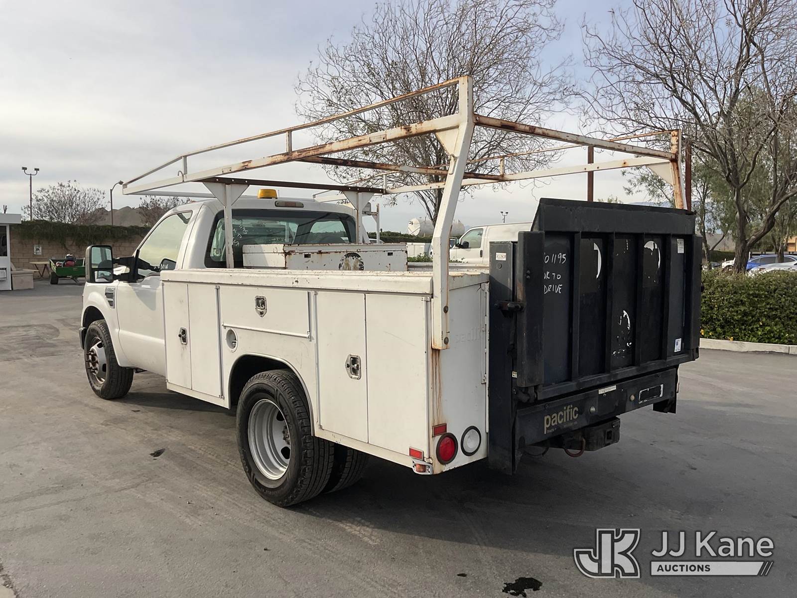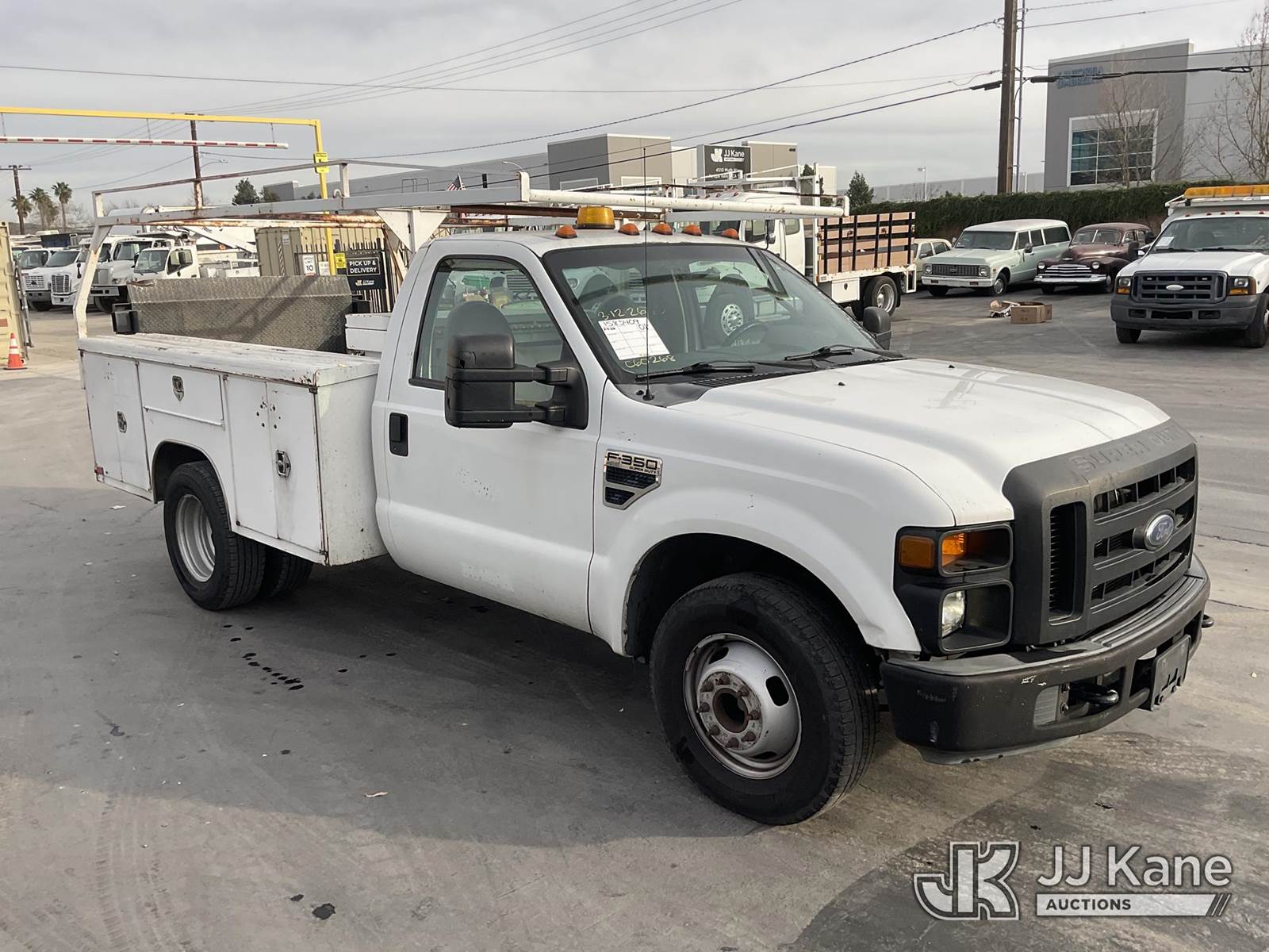 2008 Ford F-350 SD Utility Truck, 8-cyl gas, Auto, A/C, with Utility Bed, Tow Package, Ladder Rack, Lift Gate, (198,629 miles) (Runs & Moves) This is a Titled Item NOTE: This unit is being sold AS IS/WHERE IS via Timed Auction and is located in Jurupa Valley, CA. Inspection & preview days for this unit are the 2 business days prior to the first day of items closing for this auction, item is located at 4510 Muth Way Jurupa Valley, CA 92509 and hours of operations are 8a-4p. For pre-sale questions, please contact please contact Office Staff @ (310) 353-7140. Dealer License Number 45696. (Buyer is responsible for removal. Assistance by consignor or JJ Kane Auctions is not assured.)