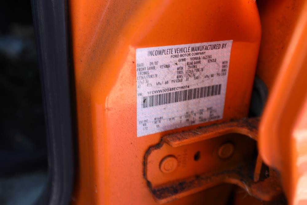 2008 Ford F-350 Super Duty. VIN: 1FDWW30548EC19074. Body: Chassis 4D. Engine: 5.4L V8 SMPI Gasoline. Odometer reading: 187085. Seller reports: Utility Body 2x4, Frame & body rot, Does not run, Possible missing parts. Title & key available.