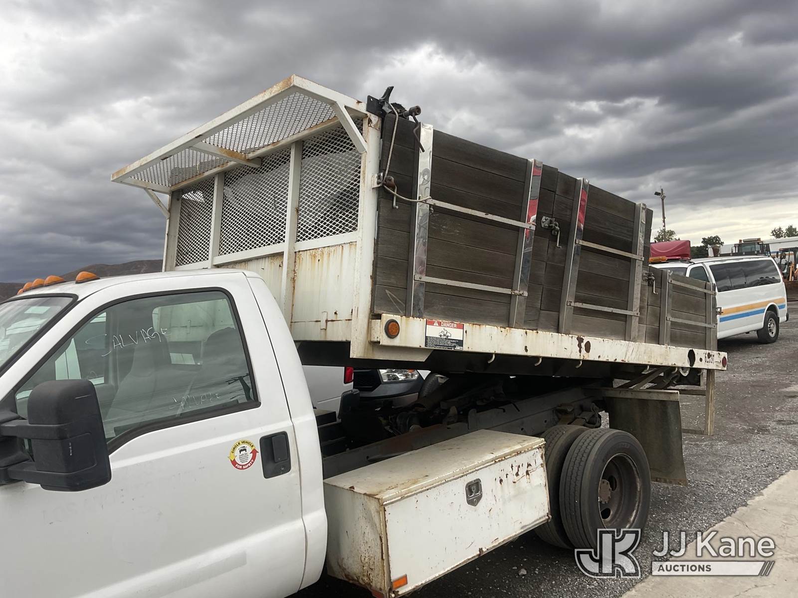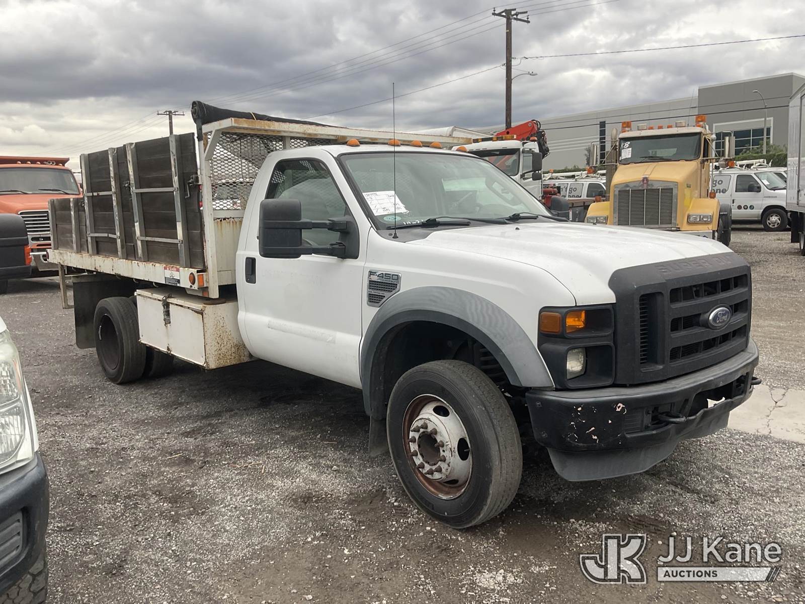 2008 Ford F-450 SD Dump Stake Truck, s/n 1FDXF46Y78ED86606, 10-cyl gas, Auto, A/C, with 12FT Dump Bed, (155,181 miles) (Runs, Does Not Move, Dump Operates) (Transmission Issues) (Bidding Restricted to Licensed Vehicle Dealers Only), This is a Titled Item NOTE: This unit is being sold AS IS/WHERE IS via Timed Auction and is located in Jurupa Valley, CA. Inspection & preview days for this unit are the 2 business days prior to the first day of items closing for this auction, item is located at 4510 Muth Way Jurupa Valley, CA 92509 and hours of operations are 8a-4p. For pre-sale questions, please contact please contact Office Staff @ (310) 353-7140. Dealer License Number 45696. (Buyer is responsible for removal. Assistance by consignor or JJ Kane Auctions is not assured.)