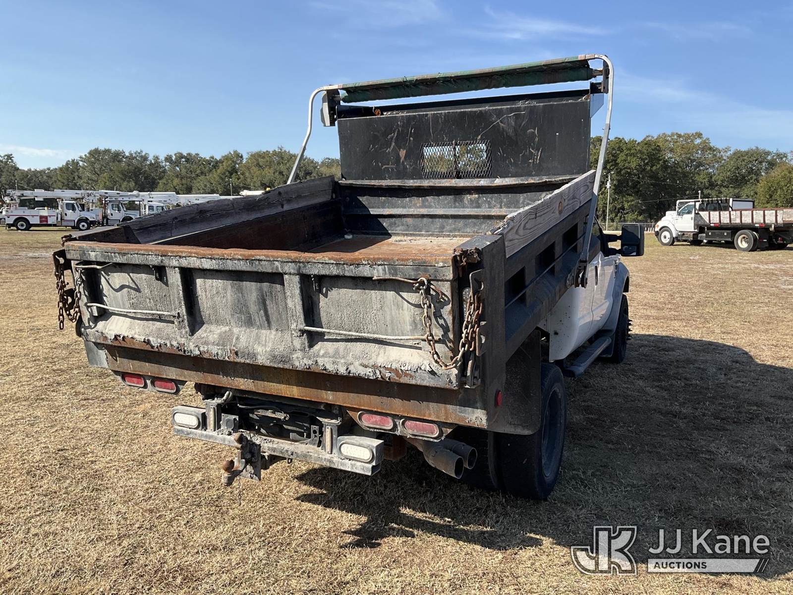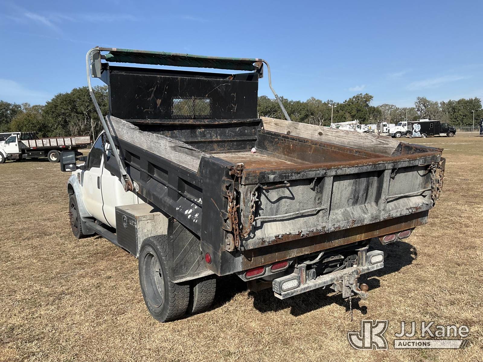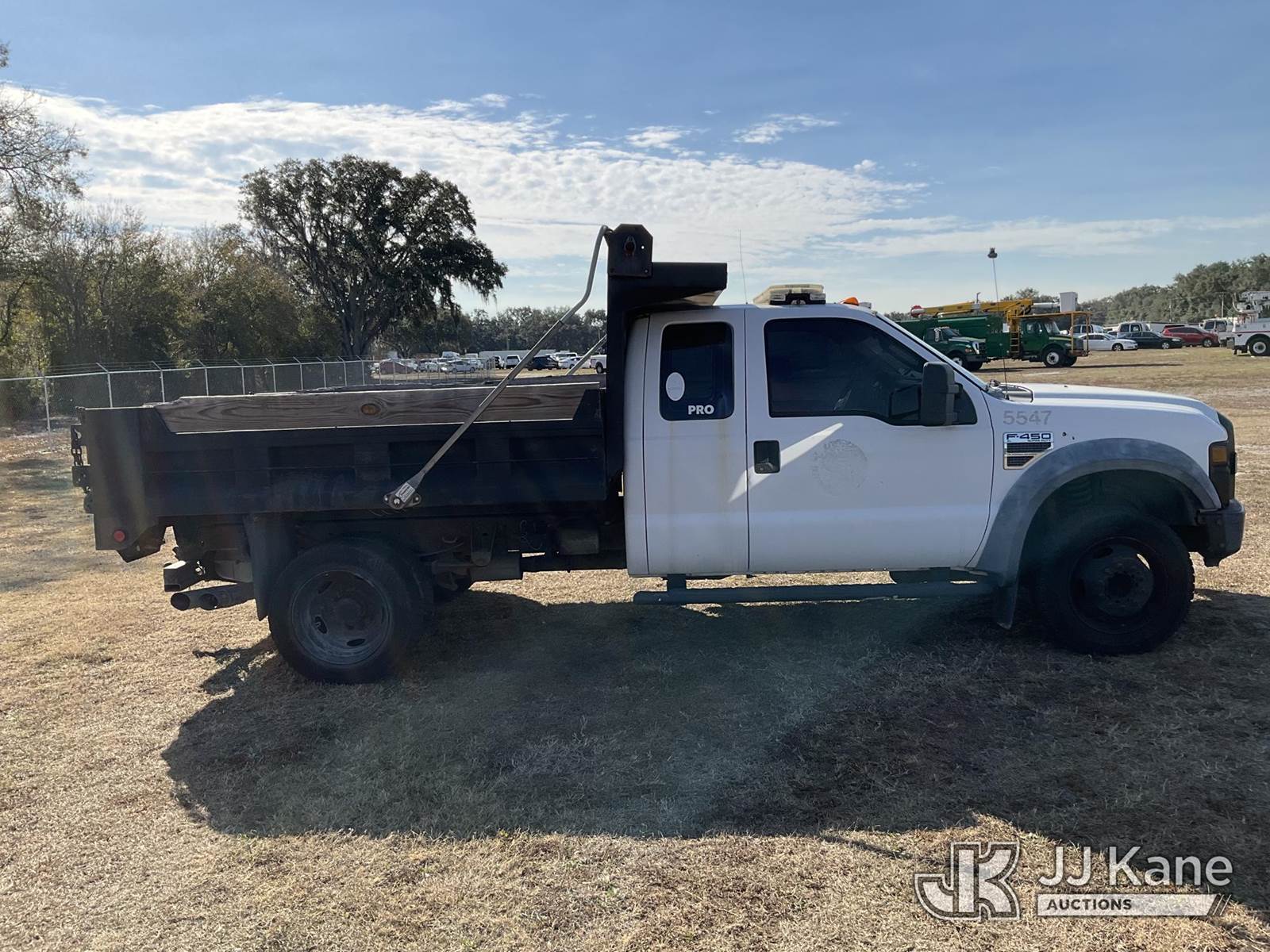 2008 Ford F-450 SD Extended-Cab Dump Truck, 6.4L V8 OHV 32V turbo diesel, RWD, Auto, A/C, (140,171 miles) City Of Tarpon Springs Unit (Runs, Moves, Operates)(Jump To Start)(FL Residents Purchasing Titled Items – tax, title & registration fees will be collected at the maximum rate of $400.00 under 25,999 and $800.00 for Over 26,000 and $250.00 trailers – Proof of insurance is mandatory; Out of State Residents Purchasing Title Items – tax will be collected based upon your state rate.) This is a Titled Item NOTE: This unit is being sold AS IS/WHERE IS via Timed Auction and is located in Thonotosassa, FL. Inspection & preview days for this unit are the 2 business days prior to the first day of items closing for this auction, item is located at 11720 N US 301 Thonotosassa, Fl 33592 and hours of operations are 8a-4p. For pre-sale questions, please contact Office Staff @ (813) 986-2485. (Buyer is responsible for removal. Assistance by consignor or JJ Kane Auctions is not assured.)
