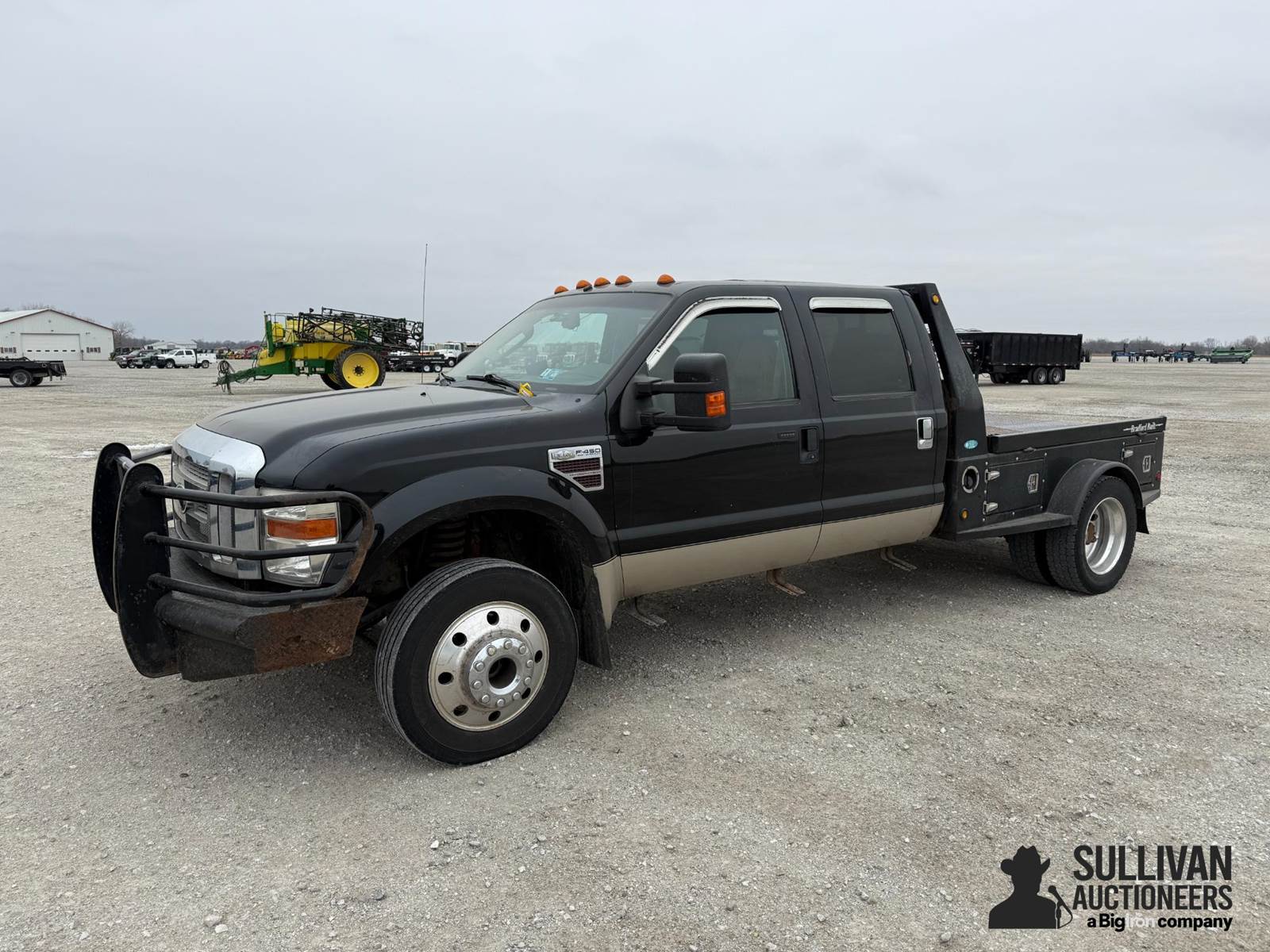 2008 Ford F450 Super Duty King Ranch 4x4 Crew Cab Flatbed Dually Pickup, 167,131 miles showing, Title Will Be Marked Miles Exempt, Power Stroke 6.4L Diesel Engine, Automatic Transmission, 8' Bradford Built Flatbed, Goose ball Hitch, Ranch Hand Bumper/brush guard, 225/70R19.5 tires, aluminum wheels, VIN: 1FTXW43R88EA58046