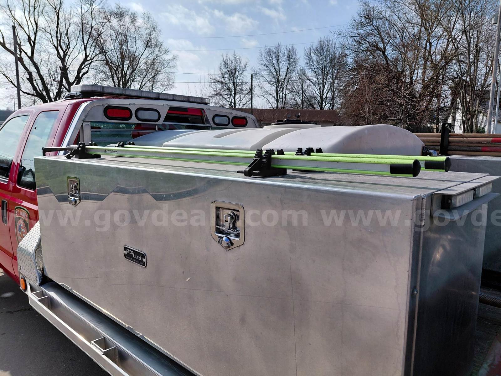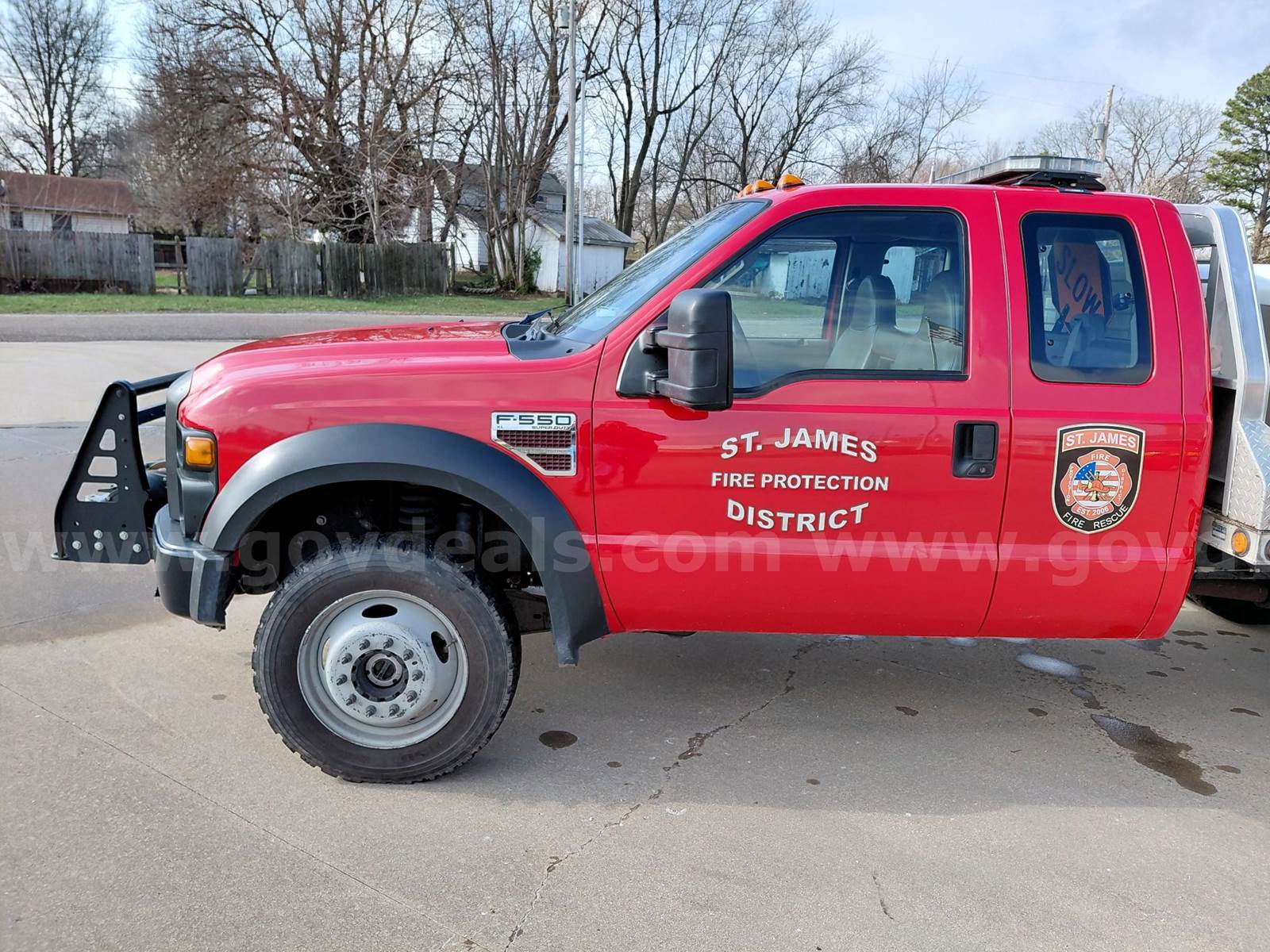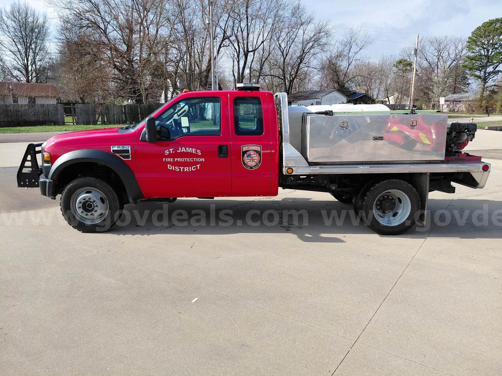 2008 Ford F-550 EXTENDED CAB CHASSIS, 6.4L V8 OHV 32V TURBO DIESEL. Starts, runs, and drives. With aluminum flatbed. Used as brush truck selling due to upgrading trucks. Miles will continue to go up some as it will be in service until sold. 2 Stainless steel tool boxes 6 foot long and 22 inches deep and 24 inches tall. Boxes sell with truck with tool mounts remaining hand tools will be removed. Comes with a Ramsey 15,000-pound winch and mounting bumper works as it should and will stay with truck remote control included. GNC Industries P550 high pressure pump and hose reel with 300 feet of 1/2 hose and 300-gallon poly water tank included. Code 3 light bar and all exterior emergency lights will sell with the truck. Radio will be removed but power supply and antenna will remain. All other lighting controls and siren controls will stay as shown in pictures. There is normal wear and tear to floor boards, AC is not working possibly needs charged. Normal wear and tear on exterior see pictures. Vinyl lettering and logos will remain until sale is final and can be discussed with buyer about removal.