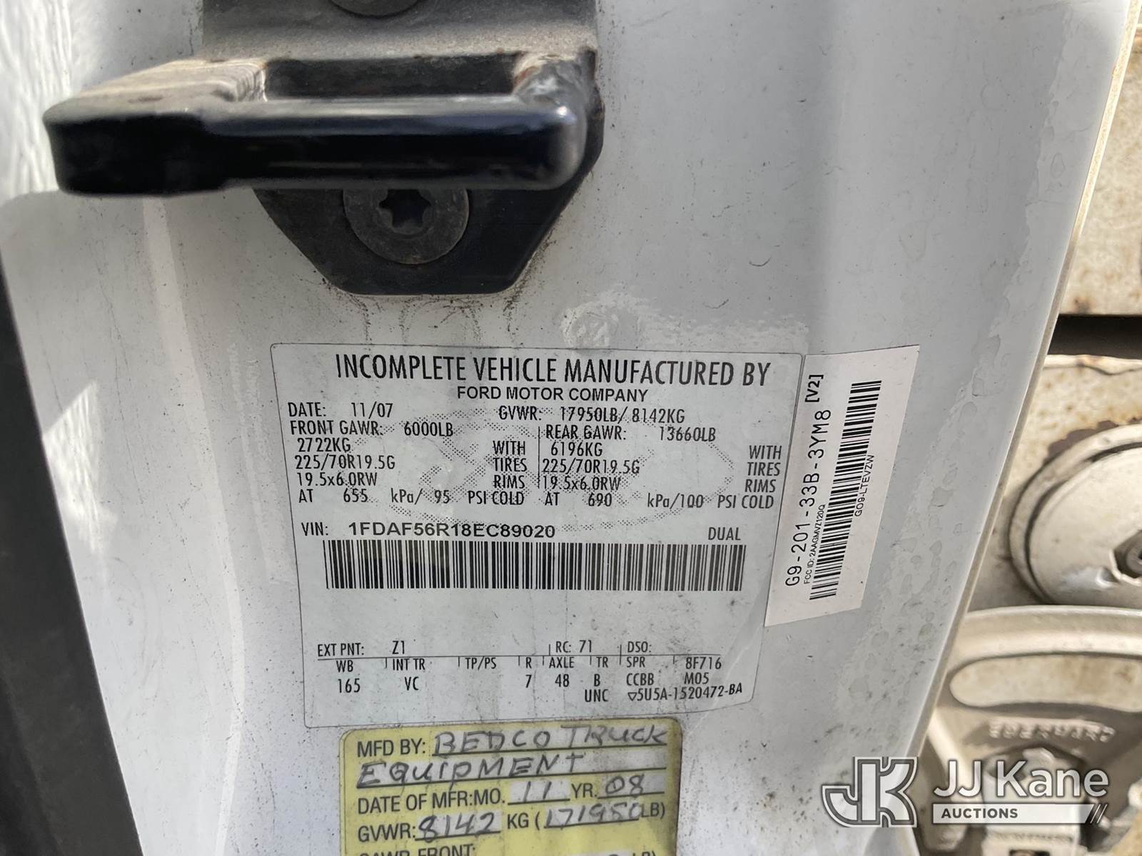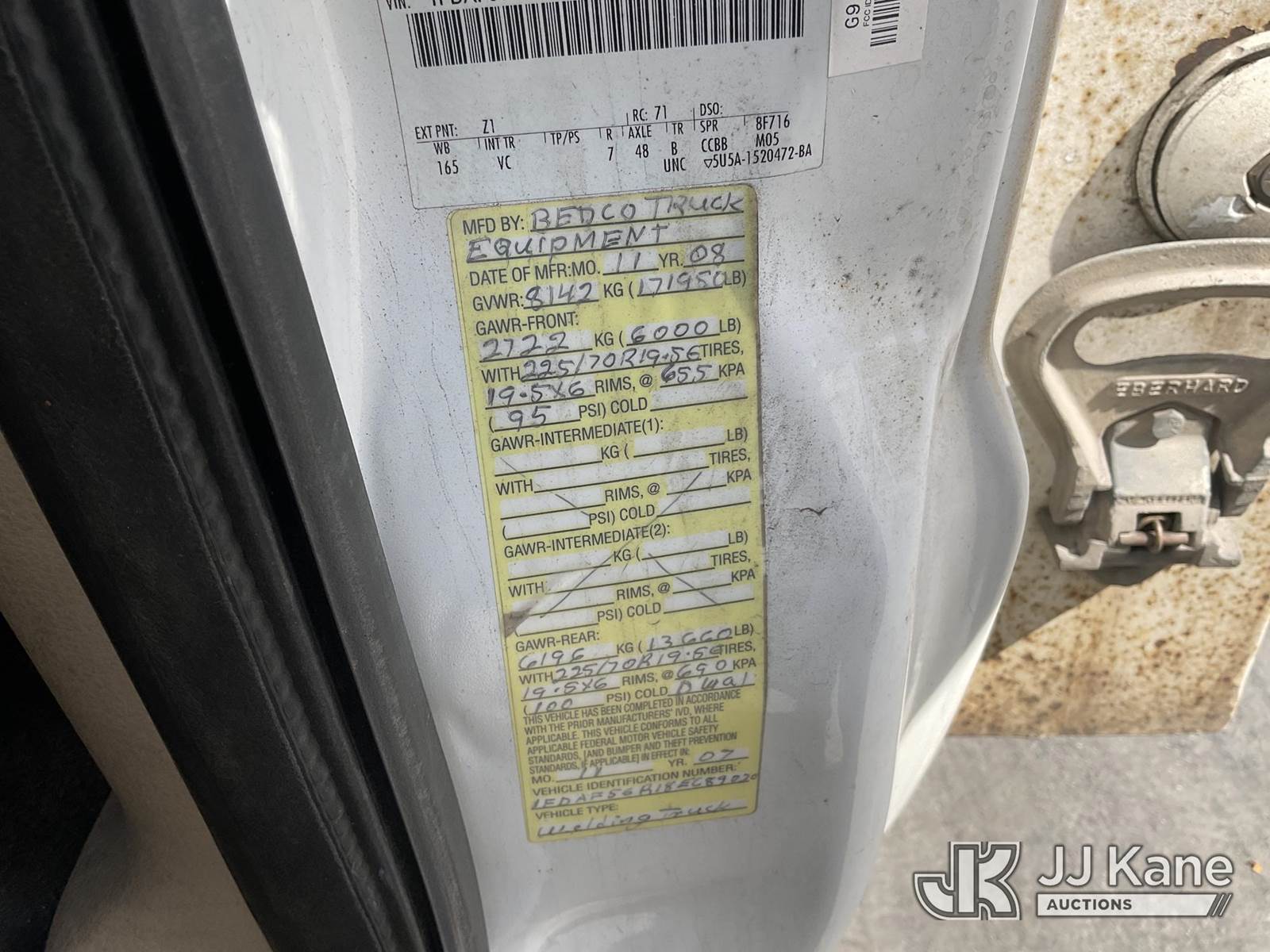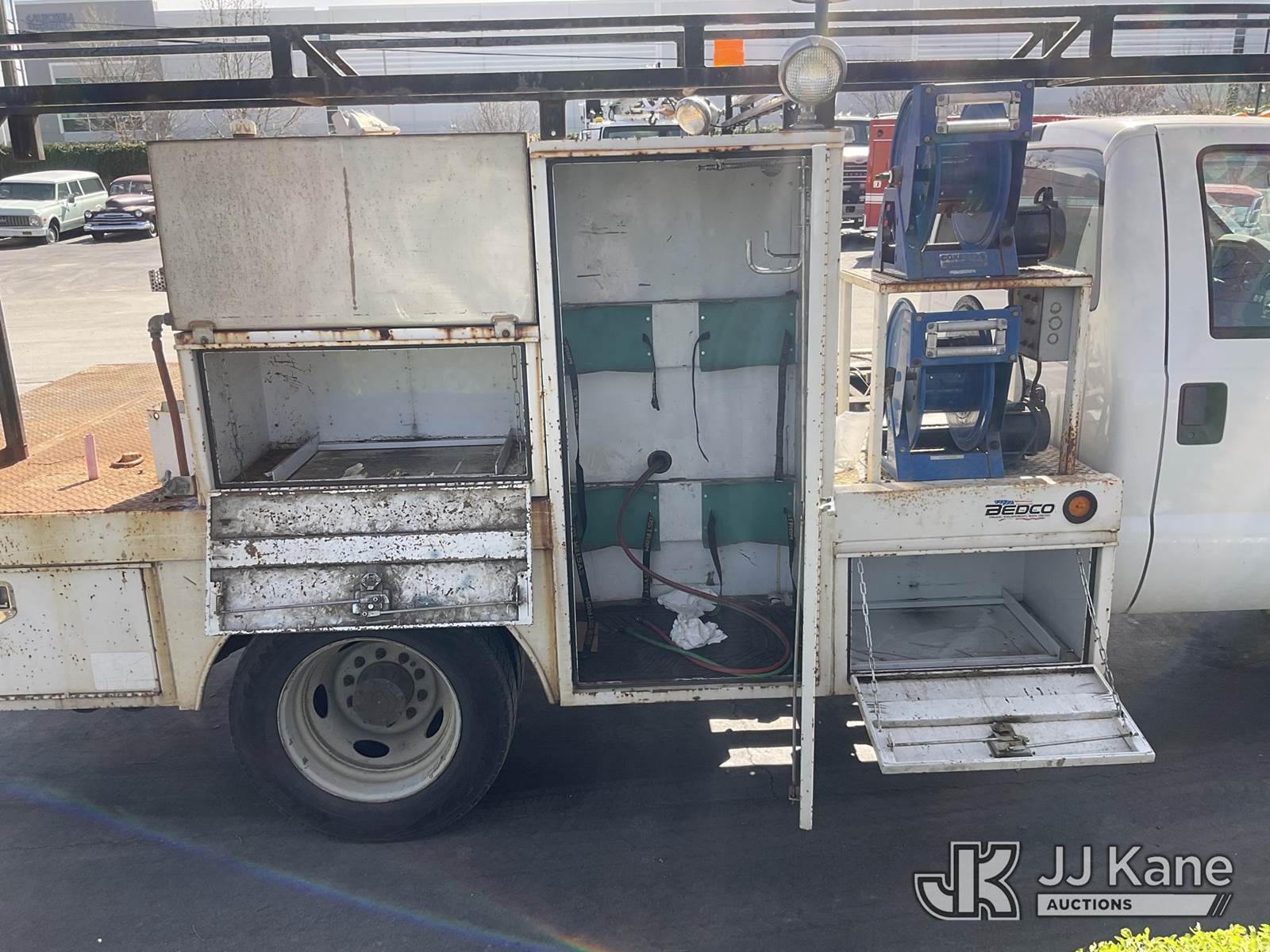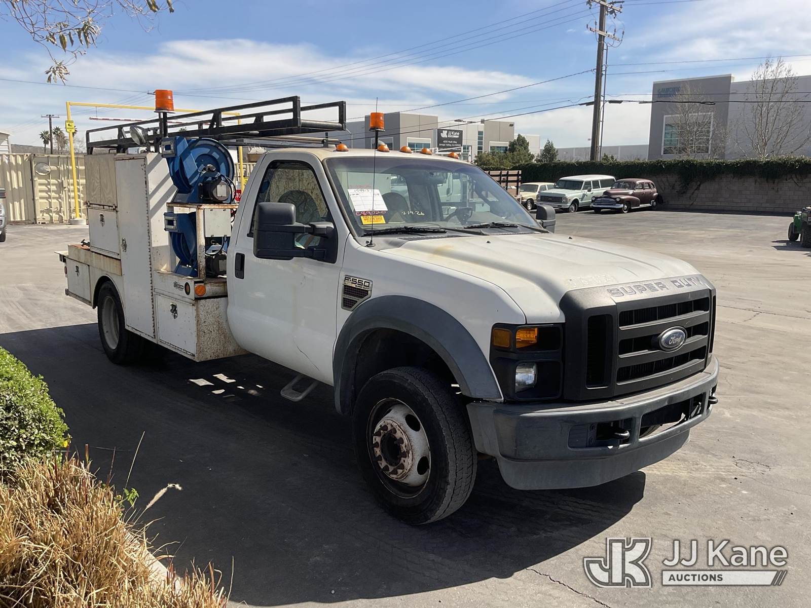 2008 Ford F-550 Mechanics Service Truck, 6.4L Turbo Diesel Auto, A/C, with Tow Package, Cable Reels, Ladder Rack, (095,059 miles) (Runs & Moves) (Bed Has Rust Damage) Subject to CARB Regs,CARB non Compliant,Cannot Operate on CA Roads/Highways until Compliant This is a Titled Item NOTE: This unit is being sold AS IS/WHERE IS via Timed Auction and is located in Jurupa Valley, CA. Inspection & preview days for this unit are the 2 business days prior to the first day of items closing for this auction, item is located at 4510 Muth Way Jurupa Valley, CA 92509 and hours of operations are 8a-4p. For pre-sale questions, please contact please contact Office Staff @ (310) 353-7140. Dealer License Number 45696. (Buyer is responsible for removal. Assistance by consignor or JJ Kane Auctions is not assured.)