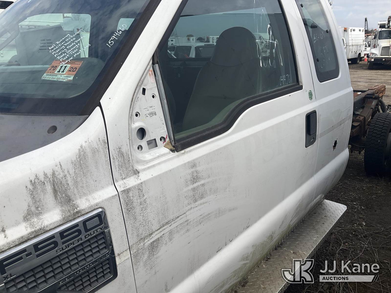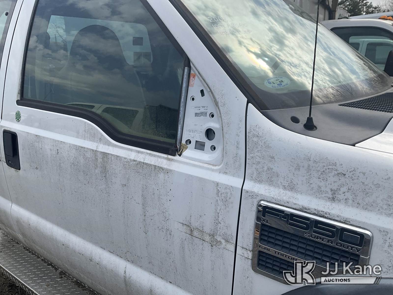 2008 Ford F-550 SuperCab 2WD DRW Extended-Cab & Chassis, 6.8L V10 Gas, Auto, A/C, (55,559 miles) (Not Running, Condition Unknown, Check Engine Light On, Missing Parts, Body Hole & Scrapes, Frame Rust, Must Tow, Buyer Must Load) This is a Titled Item NOTE: This unit is being sold AS IS/WHERE IS via Timed Auction and is located in Bellport, NY. Inspection & preview days for this unit are by appointment only; please contact us at contact@jjkane.com or 84-Go-JJKane for more details. (Buyer is responsible for removal. Assistance by consignor or JJ Kane Auctions is not assured.)