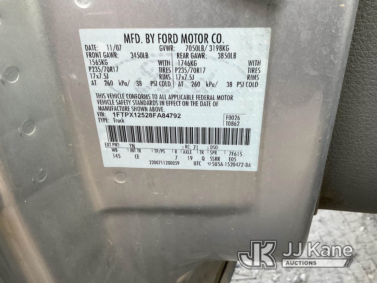 2008 Ford F150 Extended-Cab Pickup Truck, 8-cyl gas, Auto, A/C, with Tow Package, Camper Shell With Racks, (223,232 miles) (Not Running, Condition Unknown) (Camper Shell Rear Window Broken) (Body Damage) (Must Be Towed) (Bidding Restricted to Licensed Vehicle Dealers Only), This is a Titled Item NOTE: This unit is being sold AS IS/WHERE IS via Timed Auction and is located in Jurupa Valley, CA. Inspection & preview days for this unit are the 2 business days prior to the first day of items closing for this auction, item is located at 4510 Muth Way Jurupa Valley, CA 92509 and hours of operations are 8a-4p. For pre-sale questions, please contact please contact Office Staff @ (310) 353-7140. Dealer License Number 45696. (Buyer is responsible for removal. Assistance by consignor or JJ Kane Auctions is not assured.)