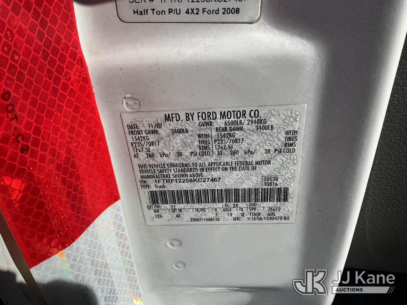 2008 Ford F150 Pickup Truck, 4.2L V6 OHV 12V Gas, RWD, Auto, A/C, with cap, (143,481 miles) (Runs & Moves)(Paint Damage)(FL Residents Purchasing Titled Items – tax, title & registration fees will be collected at the maximum rate of $400.00 under 25,999 and $800.00 for Over 26,000 and $250.00 trailers – Proof of insurance is mandatory; Out of State Residents Purchasing Title Items – tax will be collected based upon your state rate.) This is a Titled Item NOTE: This unit is being sold AS IS/WHERE IS via Timed Auction and is located in Thonotosassa, FL. Inspection & preview days for this unit are the 2 business days prior to the first day of items closing for this auction, item is located at 11720 N US 301 Thonotosassa, Fl 33592 and hours of operations are 8a-4p. For pre-sale questions, please contact Office Staff @ (813) 986-2485. (Buyer is responsible for removal. Assistance by consignor or JJ Kane Auctions is not assured.)